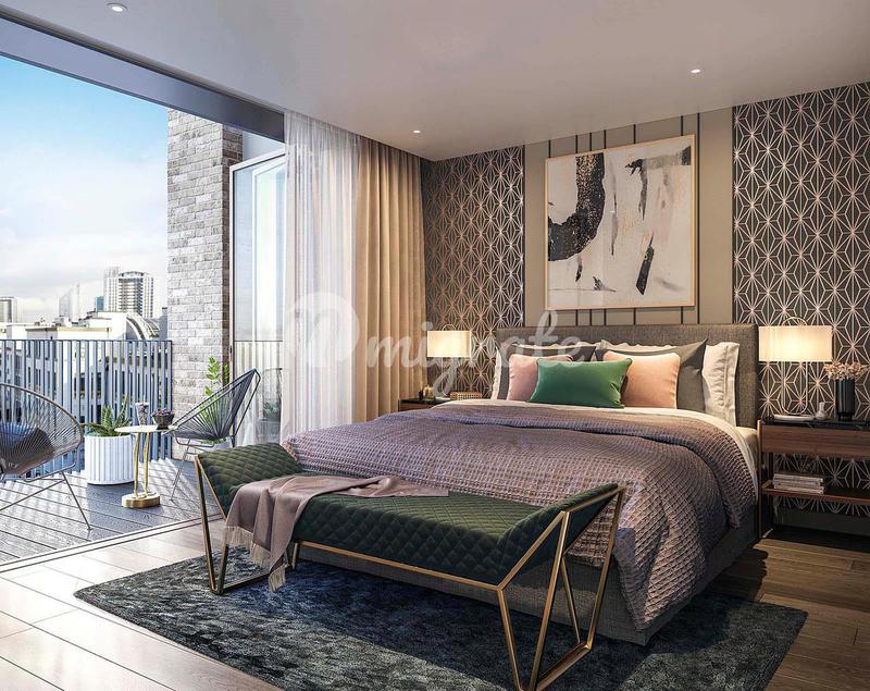 Эта уникальная квартира с одной спальней расположена на 8-м этаже The Arc в Shoreditch и имеет площадь 543 кв. Фута. Наряду с просторной главной спальней, она имеет балкон площадью 60 кв. Футов и прек