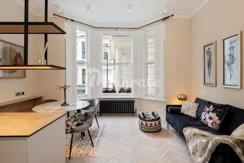 Потрясающая квартира на первом этаже с обилием естественного света в двустороннем угловом здании с лепниной на этой тихой улице с цветущей сакурой в Ноттинг-Хилле. В квартире есть большая гостиная с т