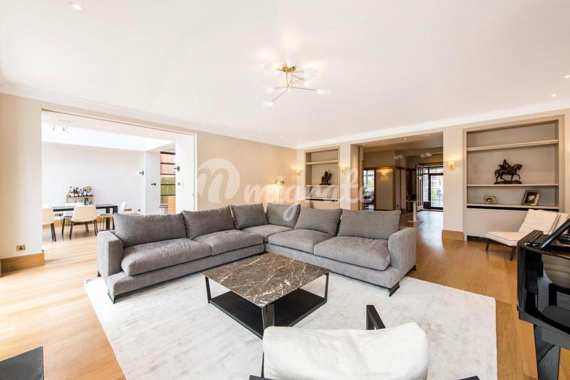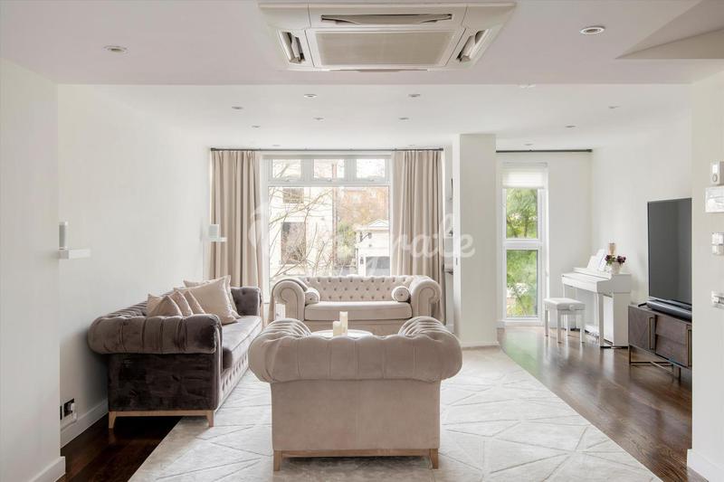 Великолепная отдельная закрытая резиденция на 4 этажах, куда можно подняться на лифте. Этот великолепный дом расположен на этой уважаемой дороге в пригороде Хэмпстед-Гарден с видом на пристройку Хэмпс
