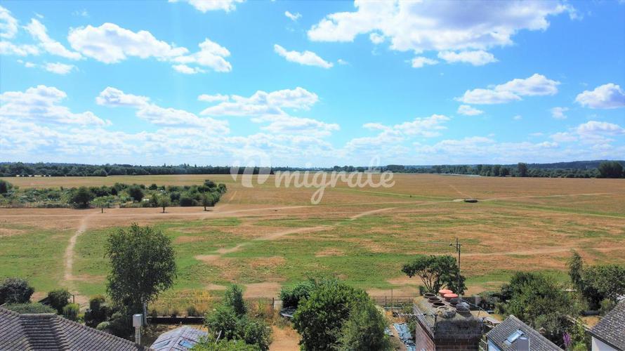 В доме два этажа, из основных комнат открывается вид на реку или луга за ее пределами. Входная дверь открывается в холл со столовой в сторону, которая открывается на кухню. Существует также гостиная с