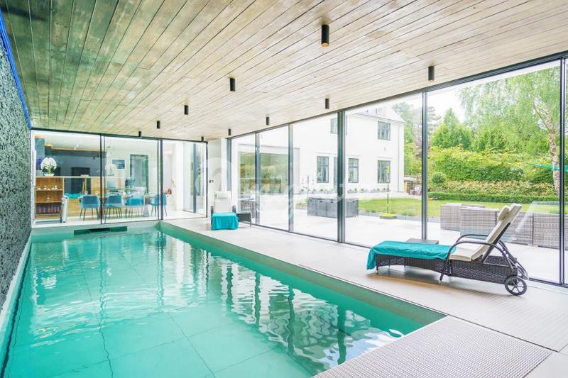 Просторный отдельный дом с крытым бассейном, великолепной кухней открытой планировки и гостиной рядом с большой мощеной террасой. Остальные помещения включают в себя пять спален, четыре из которых име