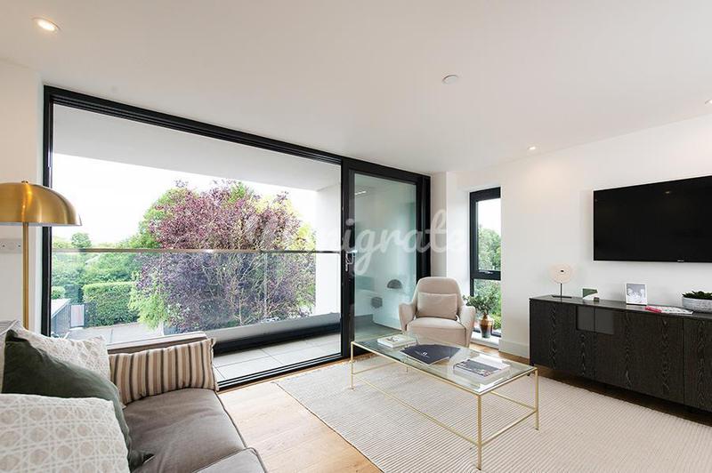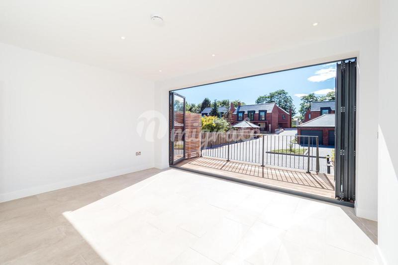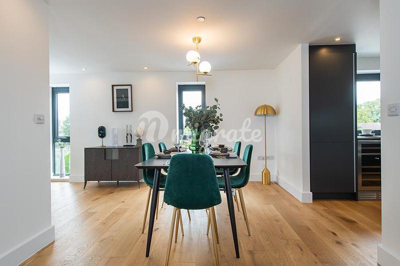 Номер 120, The Mountford — это современный двухквартирный дом с просторной гостиной, охватывающей заднюю часть дома, с застекленными двустворчатыми дверями, которые открываются в задний сад. В спальня