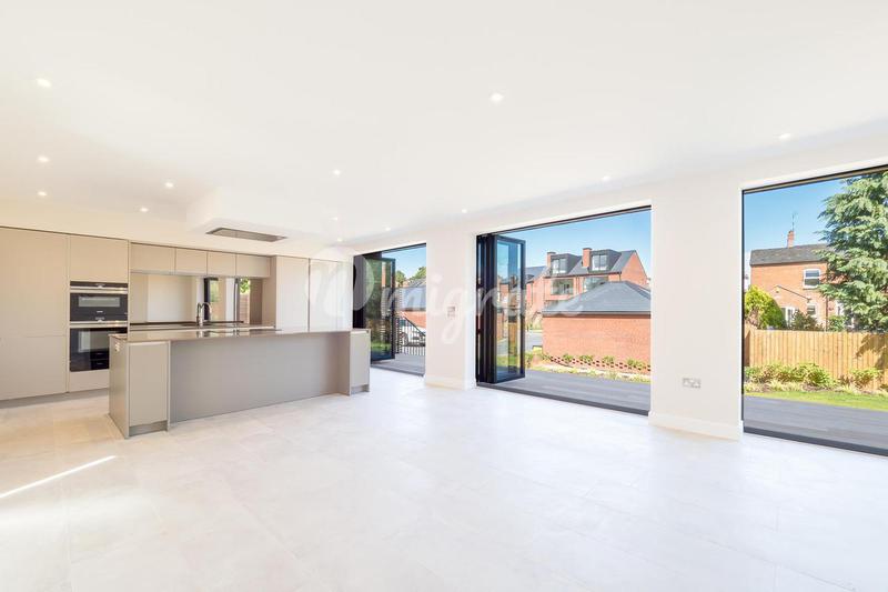 Номер 120, The Mountford — это современный двухквартирный дом с просторной гостиной, охватывающей заднюю часть дома, с застекленными двустворчатыми дверями, которые открываются в задний сад. В спальня