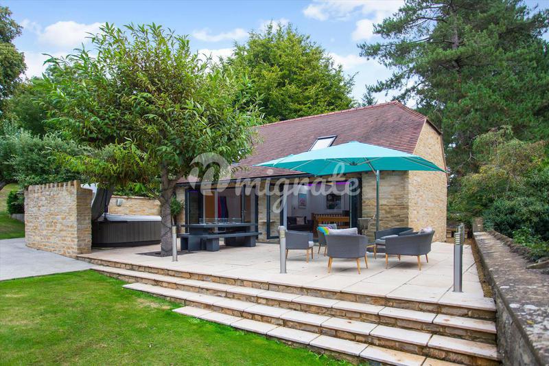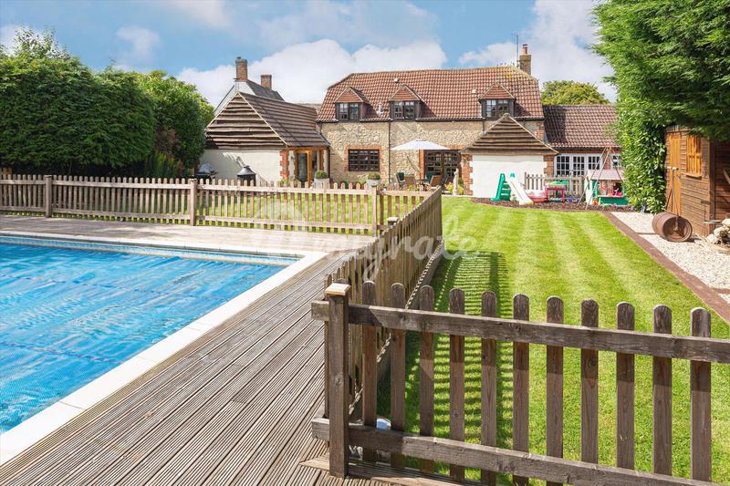 Фантастическое преобразование амбара с гибкими и хорошо спланированными помещениями, включая парковку, гараж, летний домик и бассейн. Fowlers Barn расположен в Нижней деревне недалеко от Блансдона, в