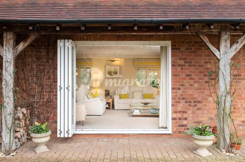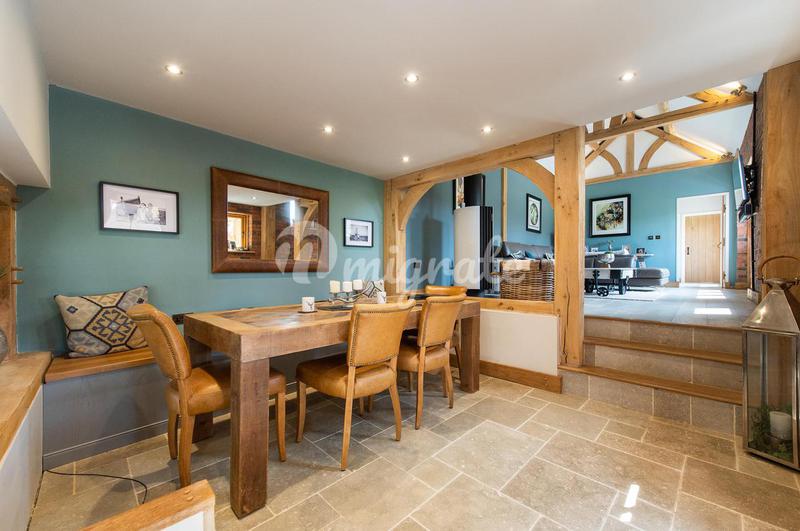Основное преобразование амбара имеет прихожую, просторную гостиную, столовую, кухню/комнату для завтрака и подсобное помещение. Есть четыре спальни с двуспальными кроватями, две ванные комнаты и еще о