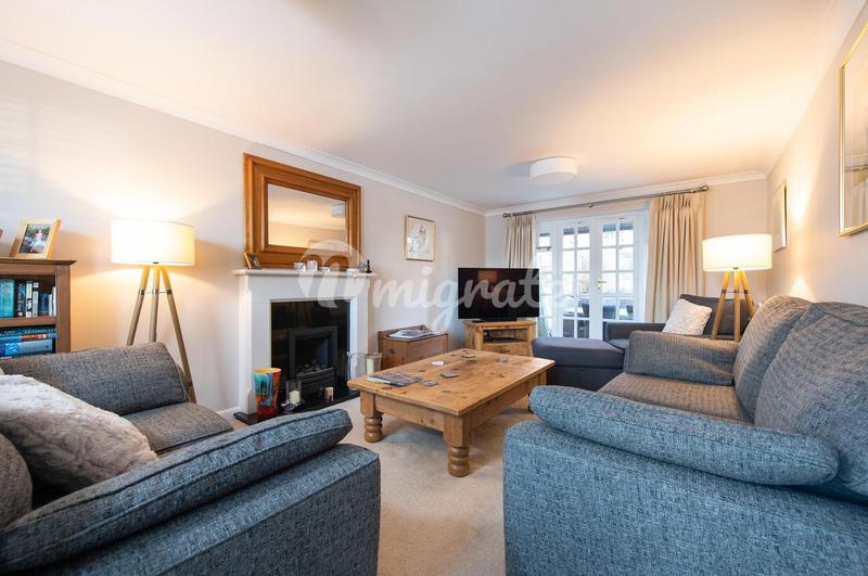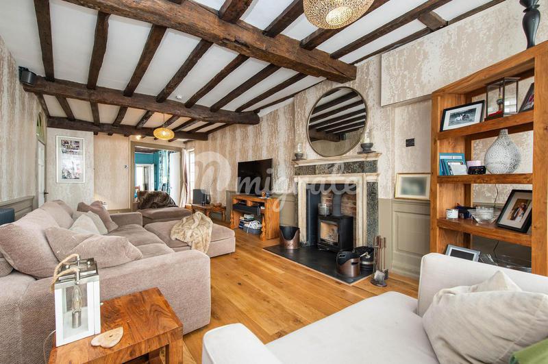 В собственность можно попасть через светлый и уютный вестибюль с лестницей, ведущей на второй этаж, и дверями в основные приемные. Они включают в себя красивую гостиную с потрясающим камином inglenook