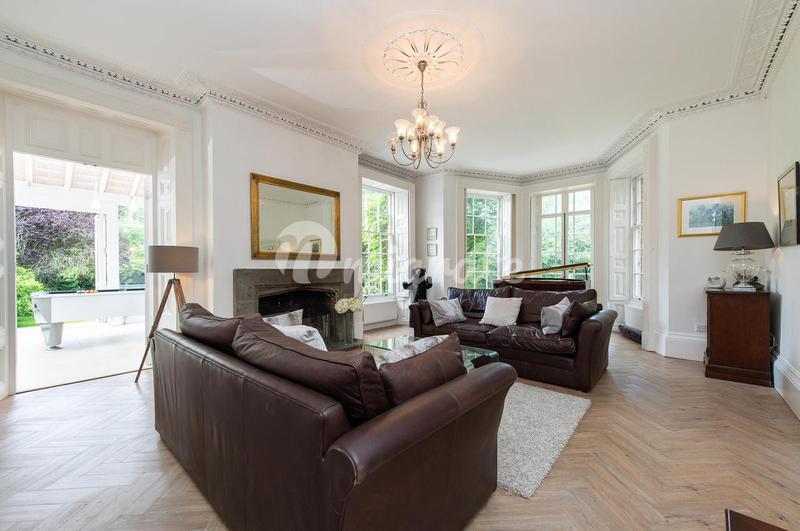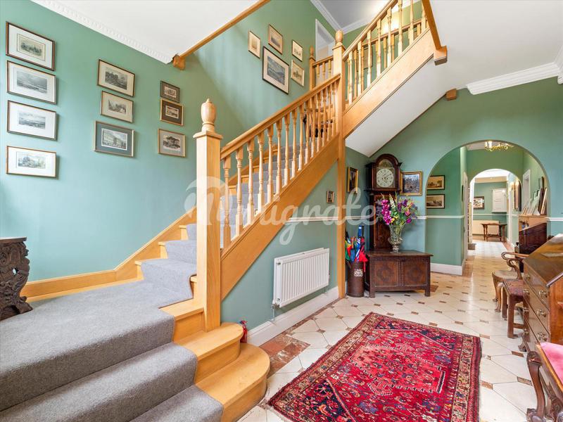 Один входит в собственность через приемную с лестницей, поднимающейся на первый этаж, и дверями, излучающими в главные комнаты приема, которые включают красивую гостиную с невероятным жильем камина, г