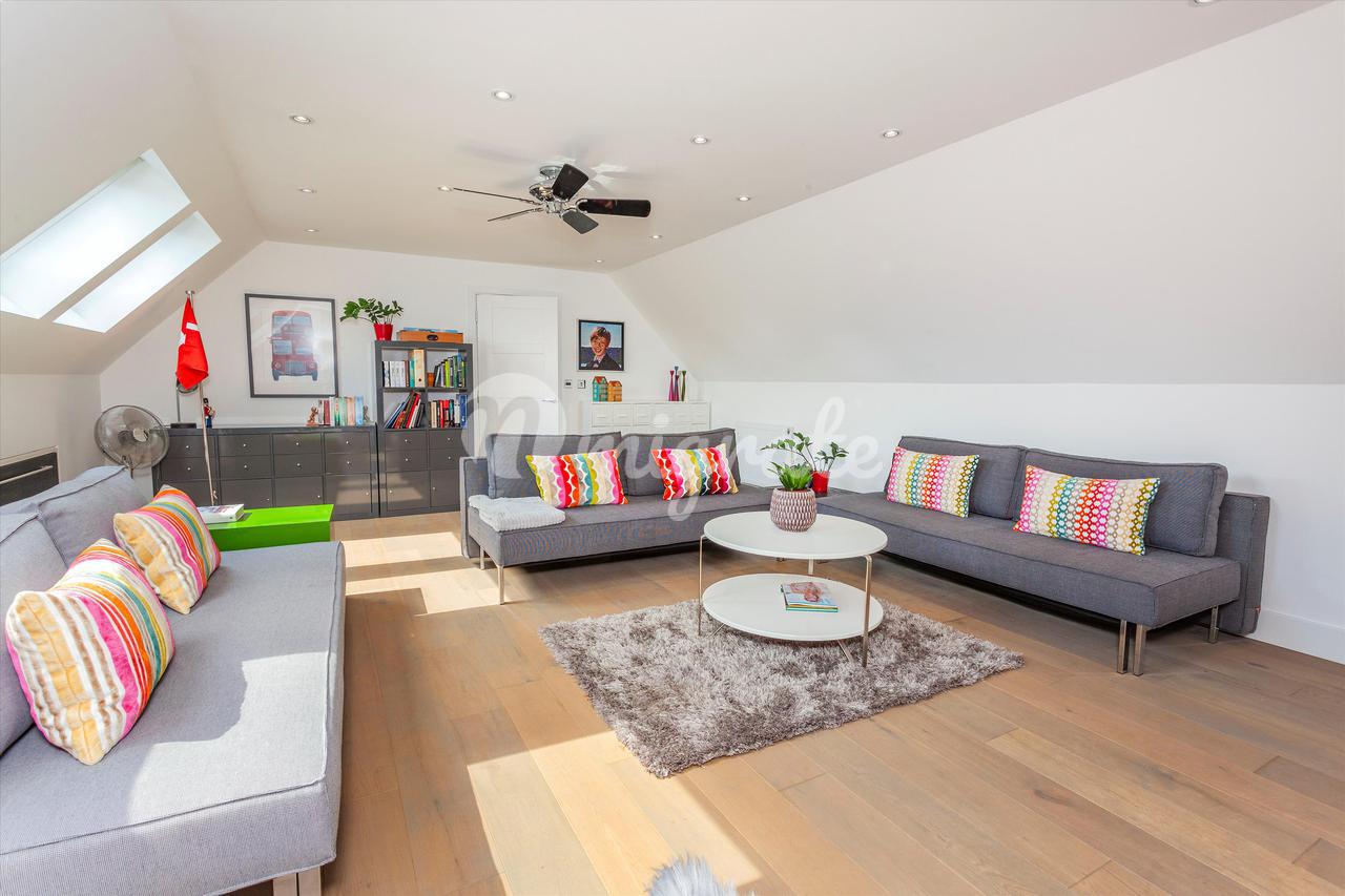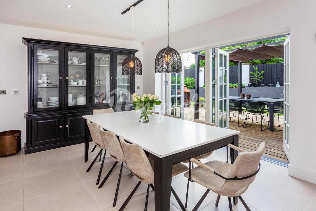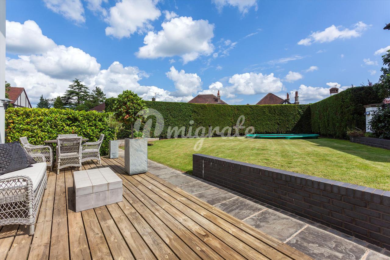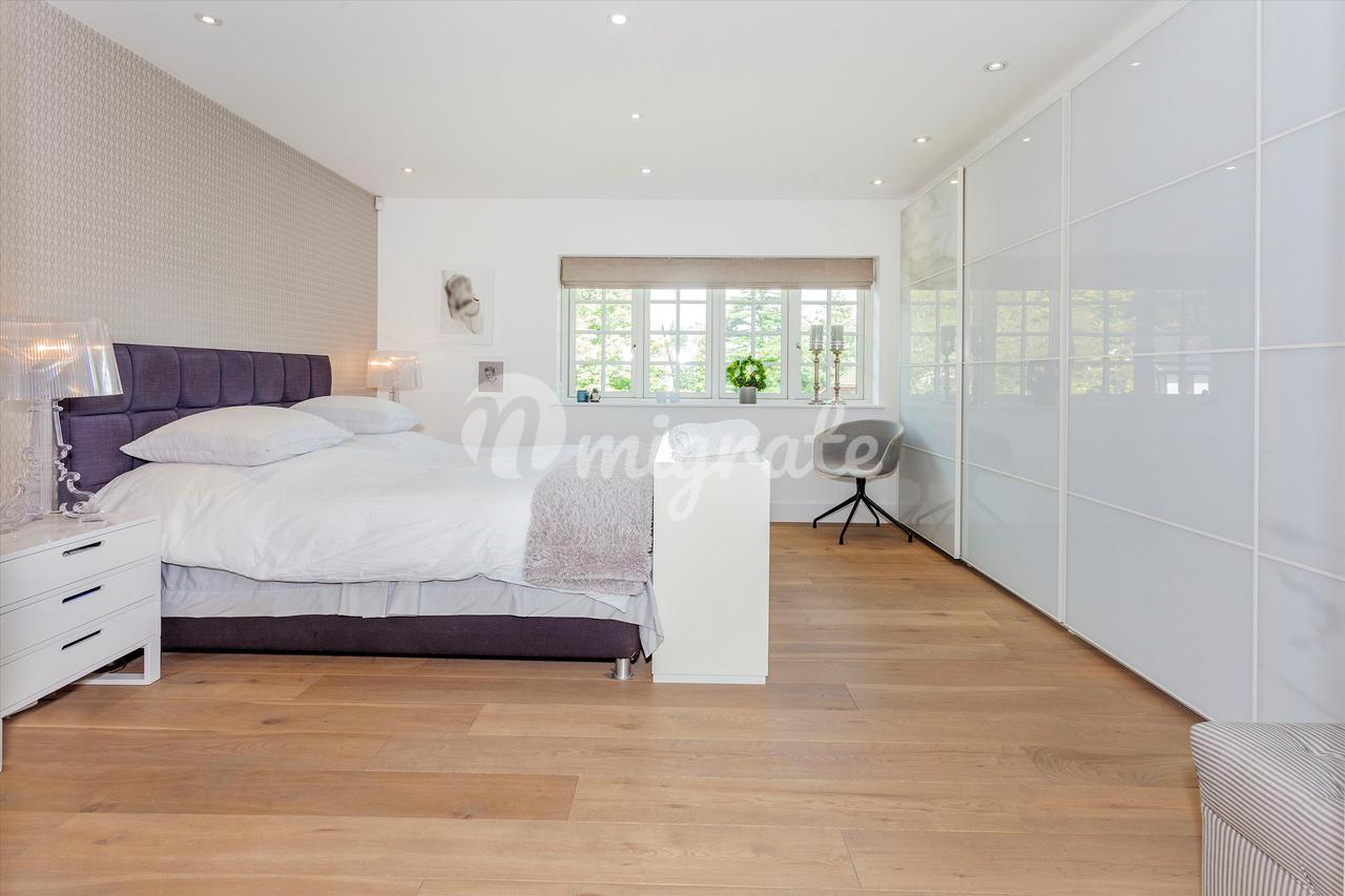 Входная дверь открывается во впечатляющую прихожую двойной высоты, которая обеспечивает доступ к основным комнатам приема и кухне / комнате для завтрака. Существует также отдельная гардеробная с туалетом. Кухня открытого плана / зал для завтрака является особенностью дома. Сделанная на заказ кухня была полностью оснащена привлекательным ассортиментом навесных и тумб от известных краснодеревщиков Rencraft. Существует также центральный остров вместе с рядом встроенных приборов под гранитными столешницами. Подсобное помещение также было оборудовано шкафами Rencraft с доступом к передней части здания. Зал для завтрака представляет собой идеальное место для более неформальной трапезы с двойными дверями, ведущими на террасу и в сад, а также с выходом к встроенному гаражу на две машины. К нему примыкает семейный номер с дальнейшим выходом в сад через двойные двери с обеих сторон. Трехсторонняя гостиная больших размеров с двойными дверями, ведущими в сад, завершающий размещение на первом этаже. На первом этаже главная спальня со встроенными шкафами, а также ванная комната с двойной раковиной, отдельной ванной и душевой кабиной. Во втором люксе имеется полностью оборудованная гардеробная, ведущая в душевую комнату. Есть еще две спальни с двуспальными кроватями, а также семейная ванная комната. На втором этаже есть еще две спальни с сантехникой, чтобы создать дополнительную спальню с ванной комнатой.