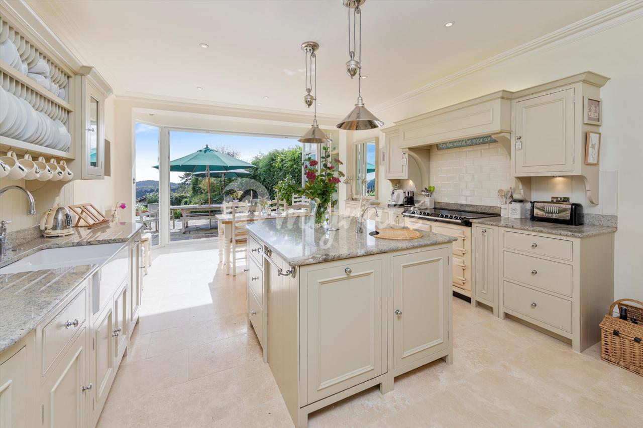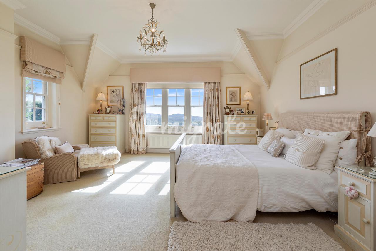 На первом этаже находится большая приемная и, помимо гостиной, семейная комната с красивым эркером, подоконником и потайной дверью, ведущей прямо на лоджию. Сделанная на заказ кухня оснащена центральным островом, раковиной дворецкого, соответствующей духовкой AGA и трехрежимным холодильником/морозильником с винным шкафом. Двустворчатые двери кухни выходят на каменную солнечную террасу Йорка, откуда открывается великолепный вид.