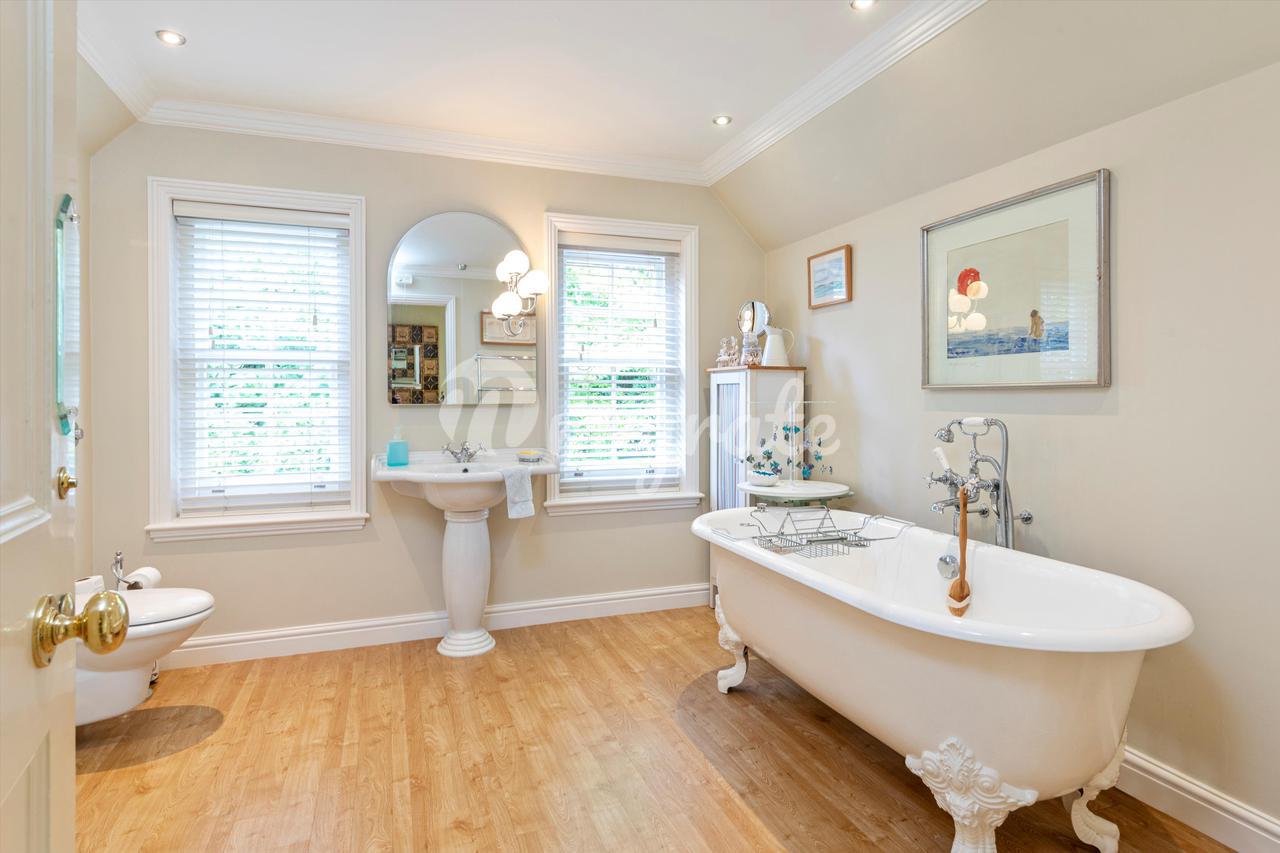 Считается, что Гленвуд-Ист находится вокруг первого дома, построенного в Гилдауне в 1879 году и впоследствии разделенного на две части. Дом был частично оштукатурен, частично облицован кирпичом под глиняной черепичной крышей и имеет превосходное расположение с захватывающим южным видом на большую часть Суррея. Внутри все основные комнаты выходят на юг, и апартаменты исключительно элегантны со многими красивыми викторианскими чертами, включая оригинальный бальный зал, который теперь представляет собой 30-футовую гостиную с дубовым танцполом, оригинальной поворотной лестницей с необычно широкими и неглубокими ступенями, обшитыми панелями внутри. двери, сводчатые карнизы на высокие потолки, потолочные карнизы, створчатые окна и двери из приемных на лоджию и солнечную террасу. Жилье включает в себя на первом этаже красивую гостевую спальню с душевой комнатой, еще три спальни с двуспальными кроватями, все из которых имеют панорамный вид, большую семейную ванную комнату и прачечную. Верхний этаж может похвастаться впечатляющей сводчатой главной спальней с ванной комнатой и потрясающими видами.