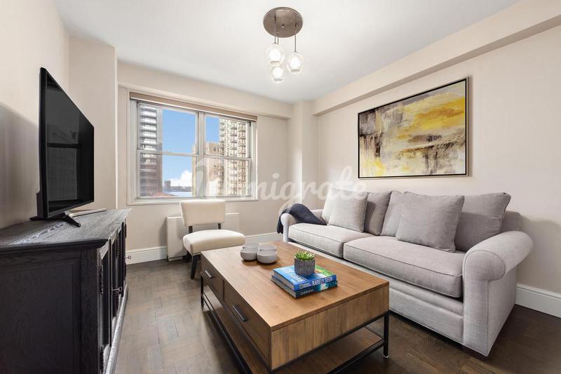 На 21-м этаже по адресу 333 East 91st находится квартира 21B, идеально пропорциональная залитая солнцем квартира с 2 спальнями и 2 ванными комнатами. Дом предлагает 10-футовые потолки, высокие окна от
