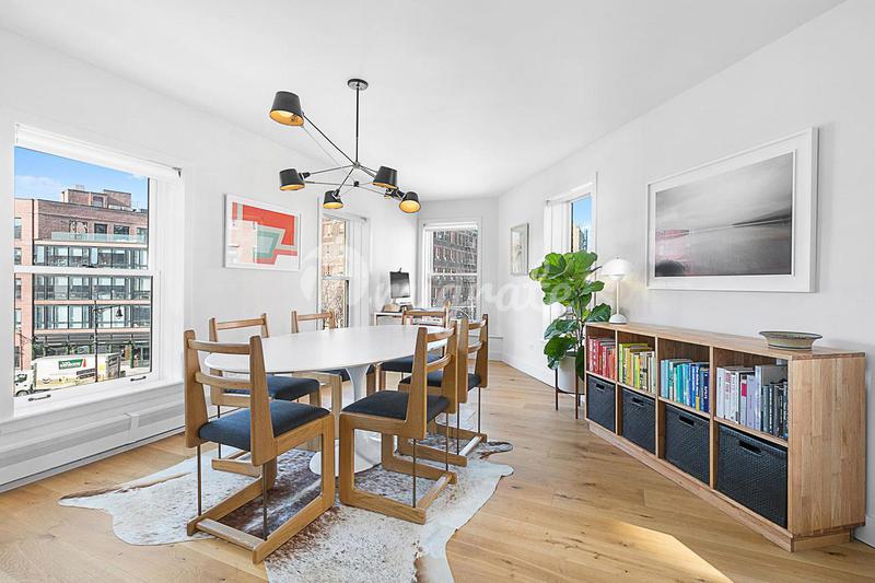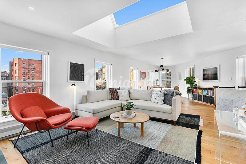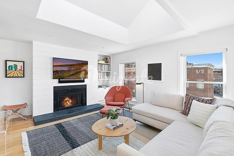 В этом полноэтажном залитом солнцем пентхаусе есть 13 окон с автоматическими шторами, массивный световой люк, дровяной камин и просторная частная крыша. Совершенно новая кухня, только что завершившая
