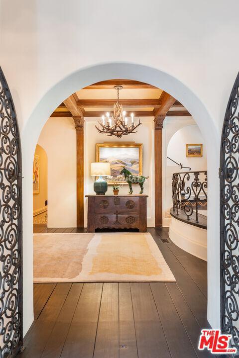 Испанский колониальный дом, когда-то бывший домом Багси Сигела. Превосходное расположение в западной части района BH Flats на участке в пол-акра. Большой официальный двухэтажный вход, украшенный распи