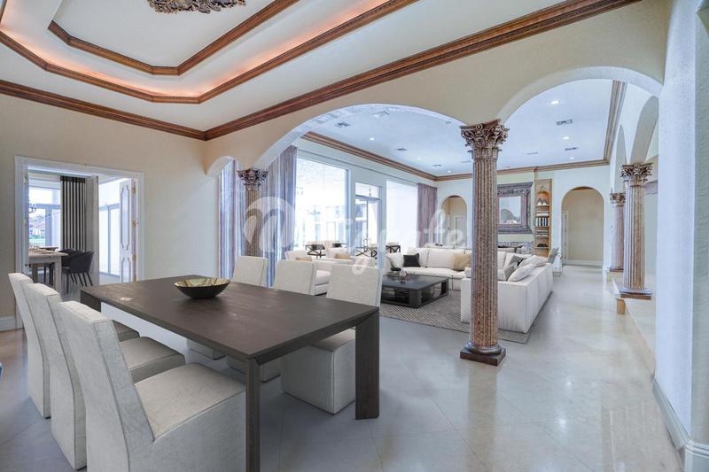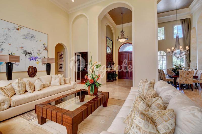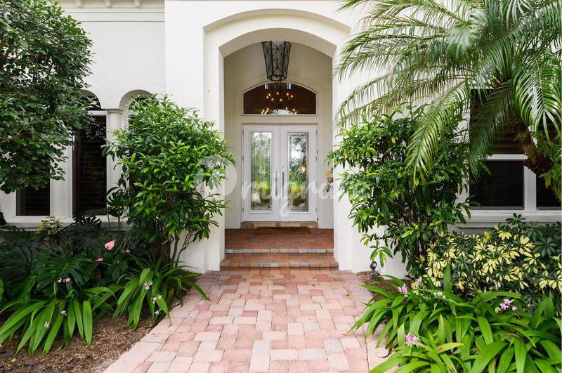 LAKEFRONT ESTATE: когда вы приближаетесь к этому безупречному поместью площадью почти 1,25 акра, вас приветствуют царственные пальмы и пышный ландшафт, который ведет к великолепному входу и фойе. С 30