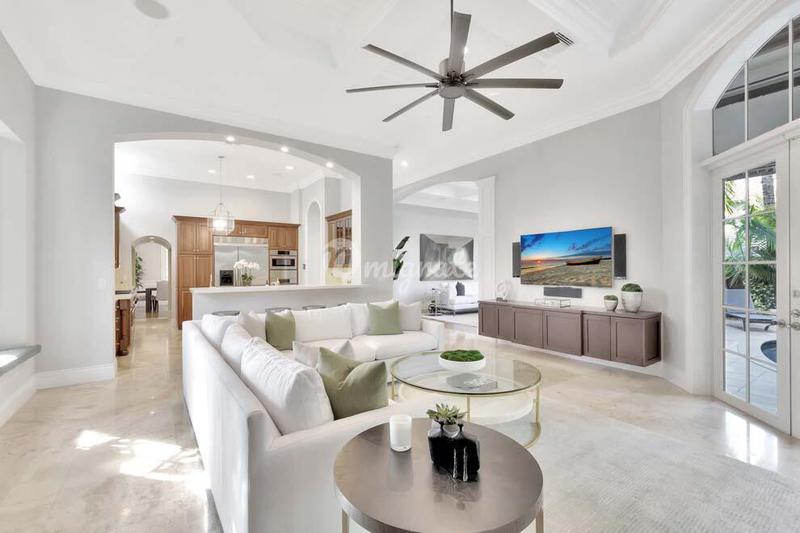 Этот дом во внутреннем дворе загородного клуба Mizner Country Club с 4 спальнями и 3,1 ванной расположен на участке площадью более 10000 кв. футов в тихом саду с южной экспозицией. Фойе ведет в гостин