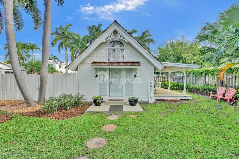 Очаровательный коттедж Delray Beach с собственным гостевым домом "Tiny Home", расположенный на двойном угловом участке (0,41 акра), окруженном белым штакетником, в нескольких минутах ходьбы от пляжа и