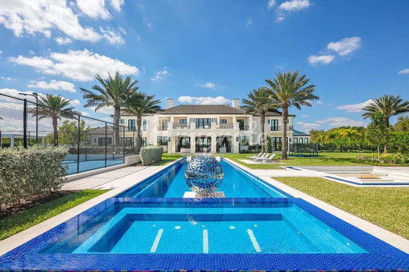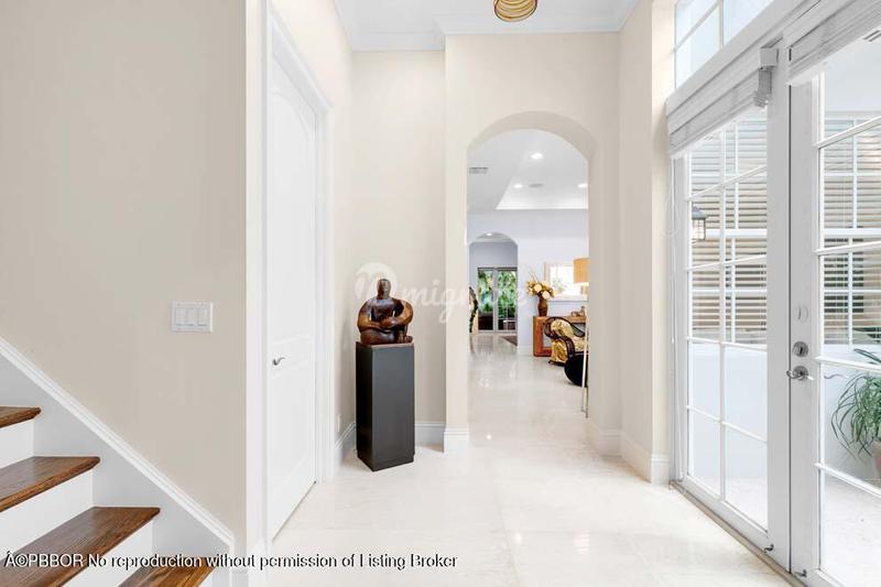 Исключительный дом на заказ с 6 спальнями и 7,5 ванными комнатами в загородном клубе Mizner Country Club с потрясающим видом на поле для гольфа. Особенности включают в себя ударопрочное стекло, генера