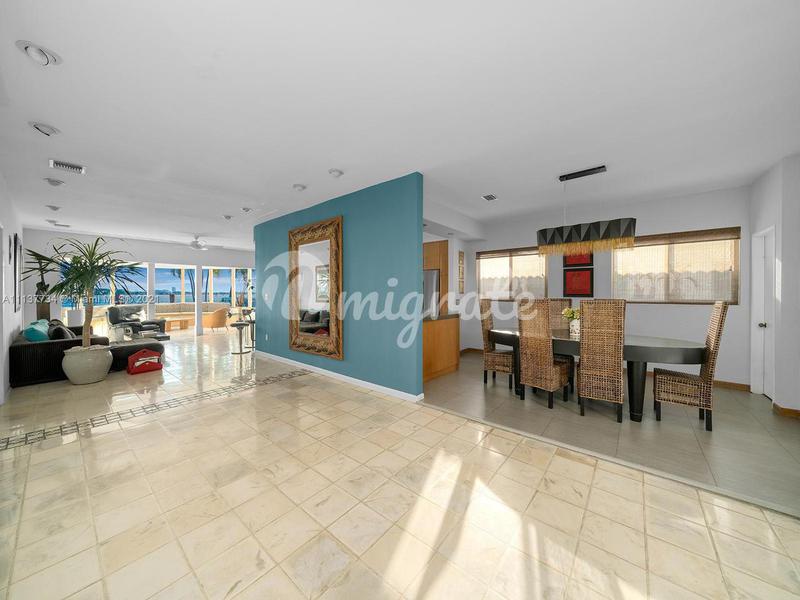 Этот классический дом на Нормандских островах предлагает захватывающий южный панорамный вид на залив Бискейн, Майами-Бич и центр города Майами, под углом, который позволяет вам любоваться восходами и