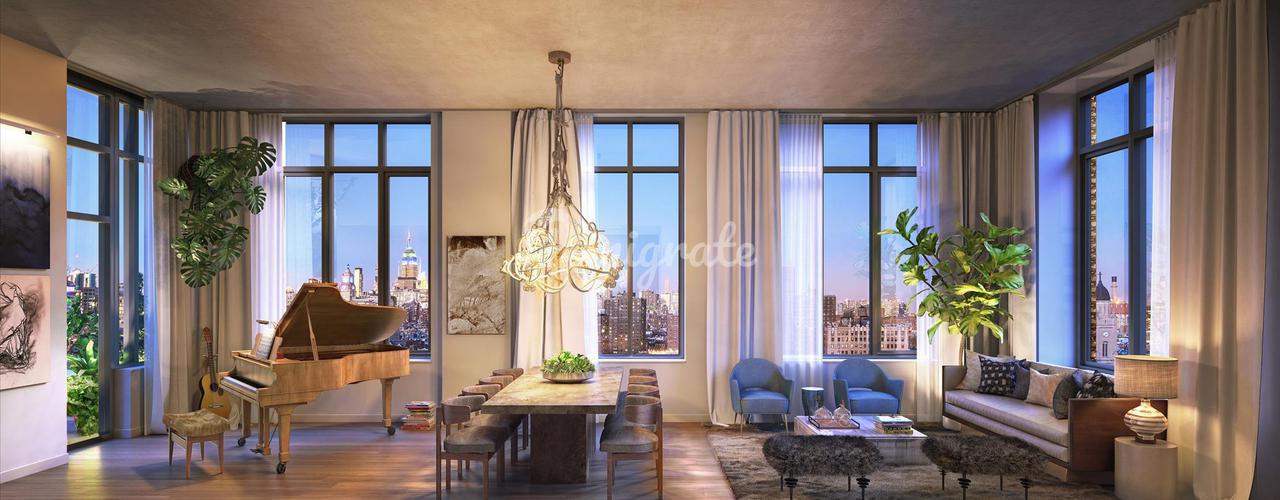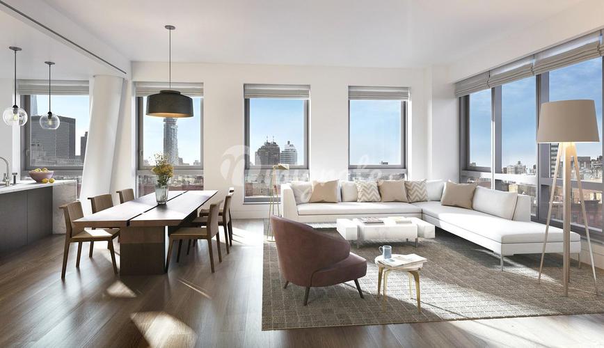 Современный комплекс расположен в деловой части Манхэттена и включает 319 апартаментов и пентхаусов. Потрясающий панорамный вид на город и Ист-Ривер, высокие потолки и внутренняя отделка деревом являю