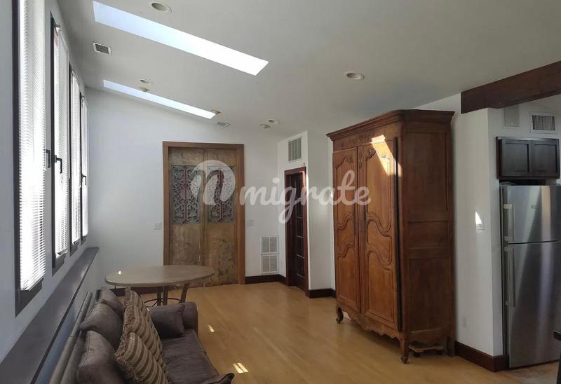 Эта стильно отремонтированная квартира с двумя спальнями и одной ванной комнатой выходит окнами на южную и восточную стороны через большие окна. Стеклянная стена гостиной, ведущая на большой балкон, о