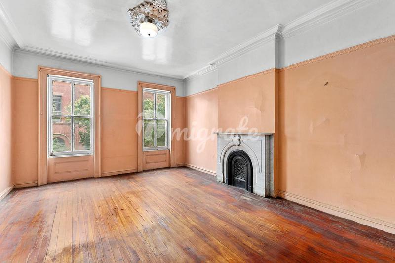 Таунхаус Brick 2 Family End Row в очень желательном и историческом Вильямсбурге, Бруклин. Оригинальные изделия из дерева, плинтусы и молдинги на первом и втором этажах. Мансардное окно из витражного с