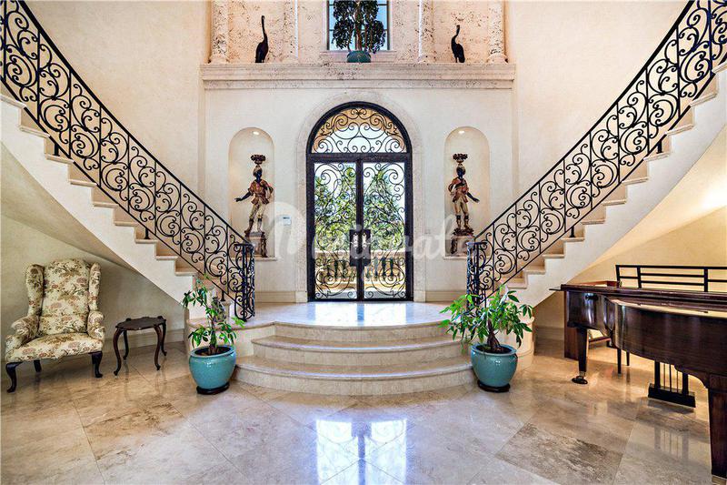 Драматические двойные двери из красного дерева открываются в этот изысканный классический таунхаус в стиле Палм-Бич площадью 3660 кв. Футов на огромном участке с высокими 14-футовыми окнами. потолки,