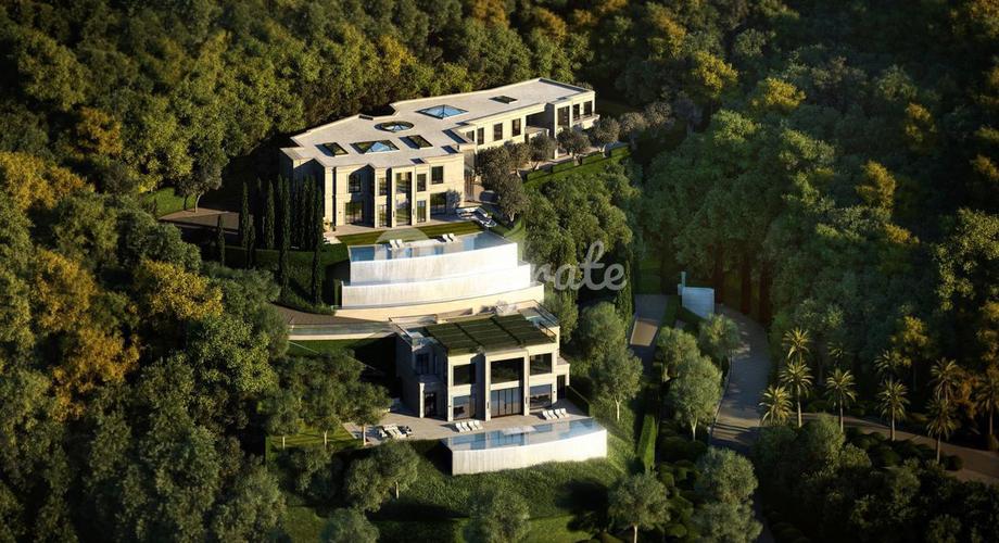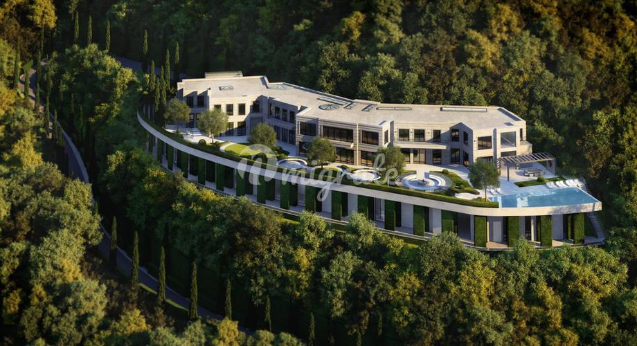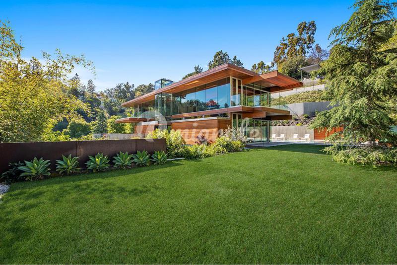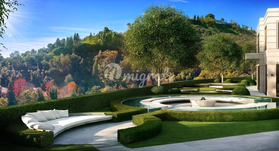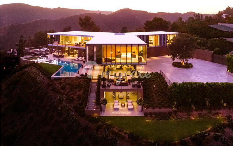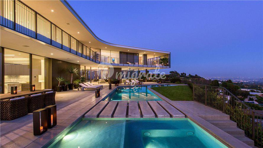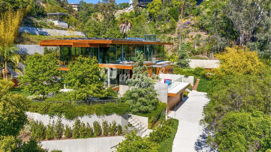 Вилла расположена на престижных Голливудских холмах в Калифорнии, на закрытой территории. Вилла включает 5 спален с гардеробными, 6 ванных комнат, 2 кухни, столовую, бильярдную. Изо всех окон открываю