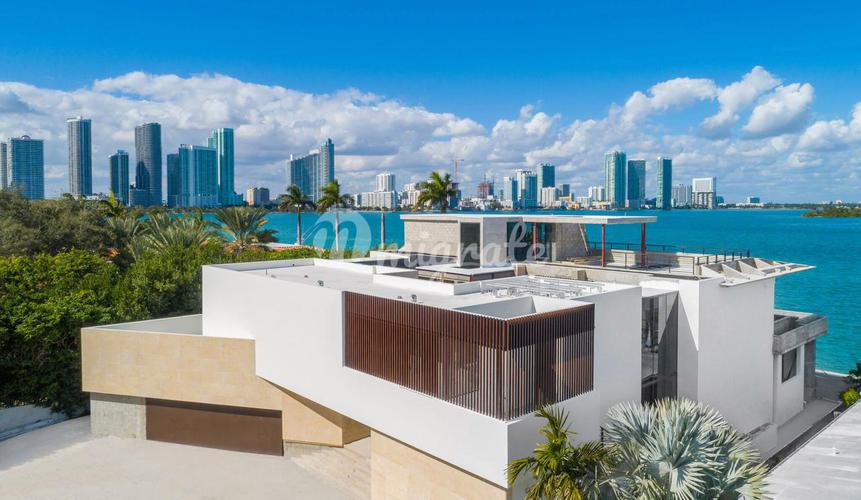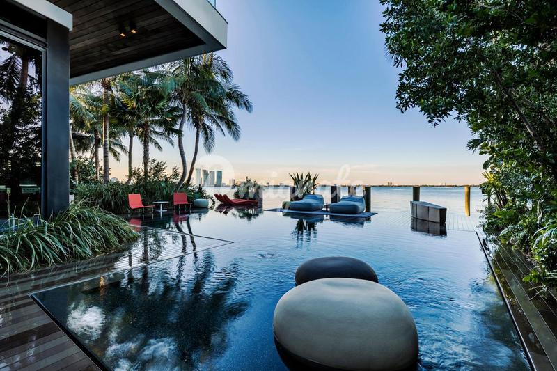 Роскошный современный дом расположен на самом берегу залива Бискейн на Венецианских островах, расположенных между городами Майами и Майами-Бич. Дом спроектирован известным архитектурным бюро Thirlwall
