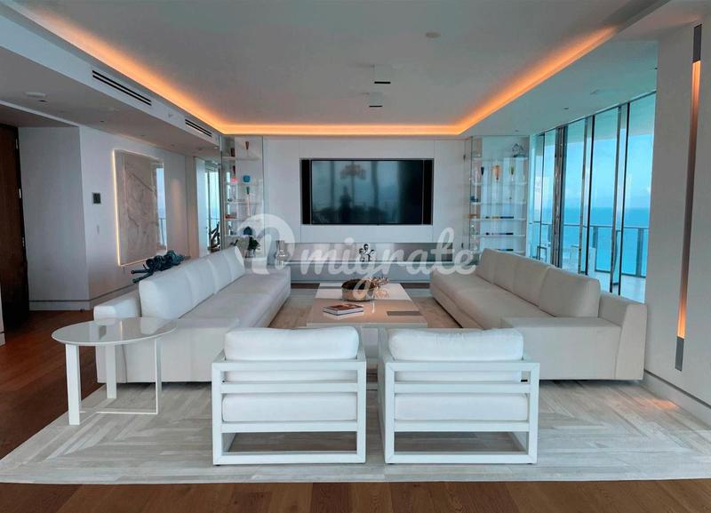 Роскошный пентхаус площадью 5122 кв. м, занимающий три этажа, расположен в элитной резиденции в Майами, предлагающей все услуги и удобства роскошной жизни на берегу океана. Резиденция состоит из 6 спа