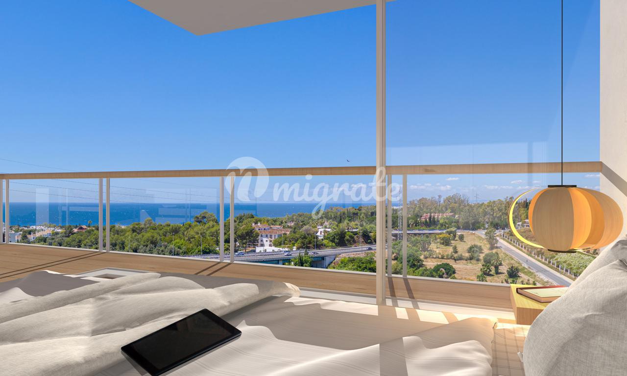 На верхнем уровне расположены три спальни с ванными комнатами, главная спальня с гардеробной. Все они имеют выход на красивую террасу с видом на море.