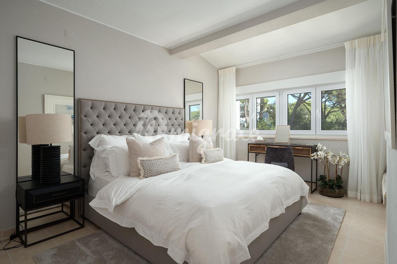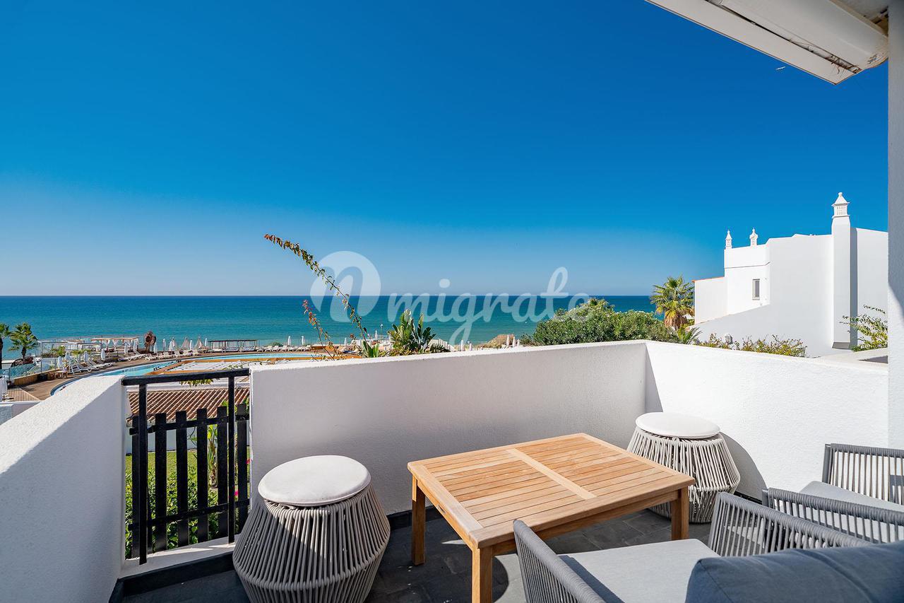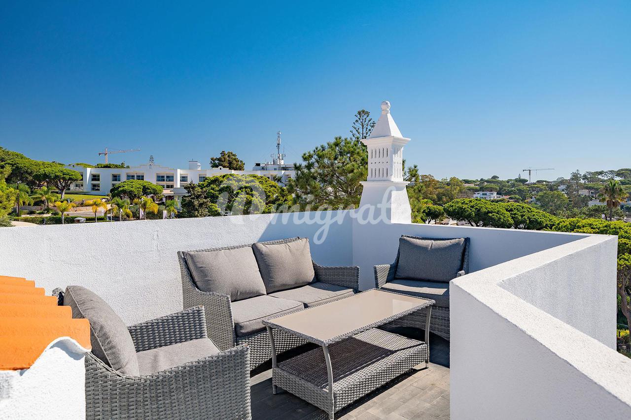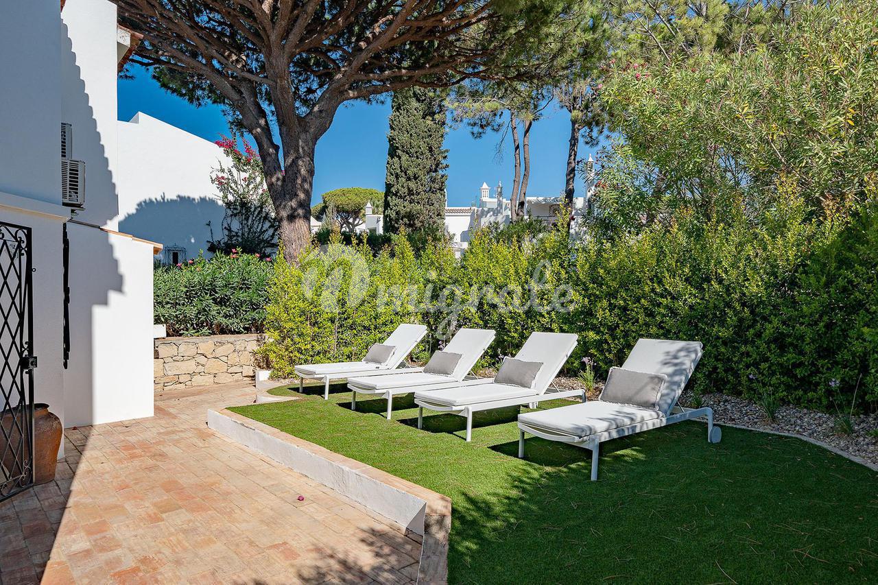Этот прекрасно отремонтированный таунхаус с тремя спальнями, полный очарования, характера и элегантности, расположен на первой линии, недалеко от пляжа и основных удобств гольф-клуба и пляжного курорта Вале-ду-Лобо.