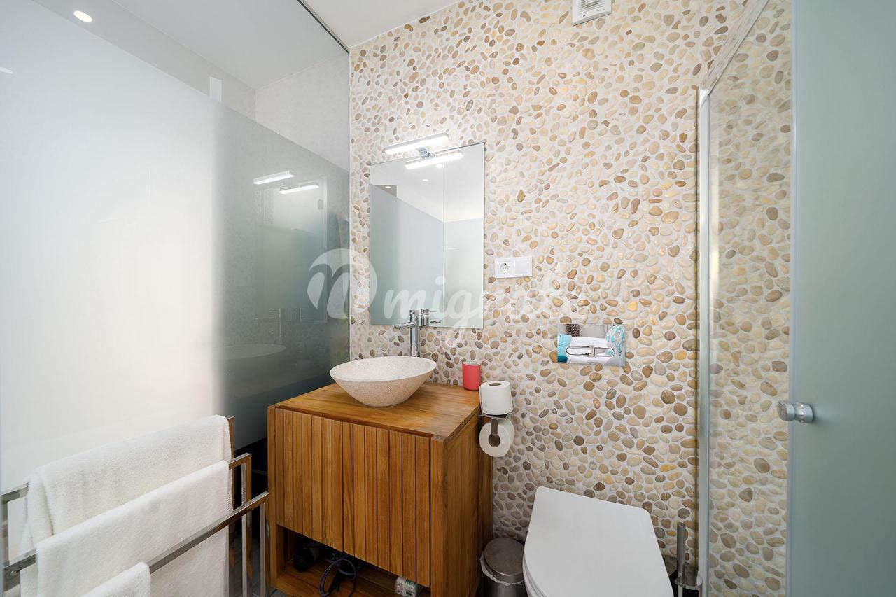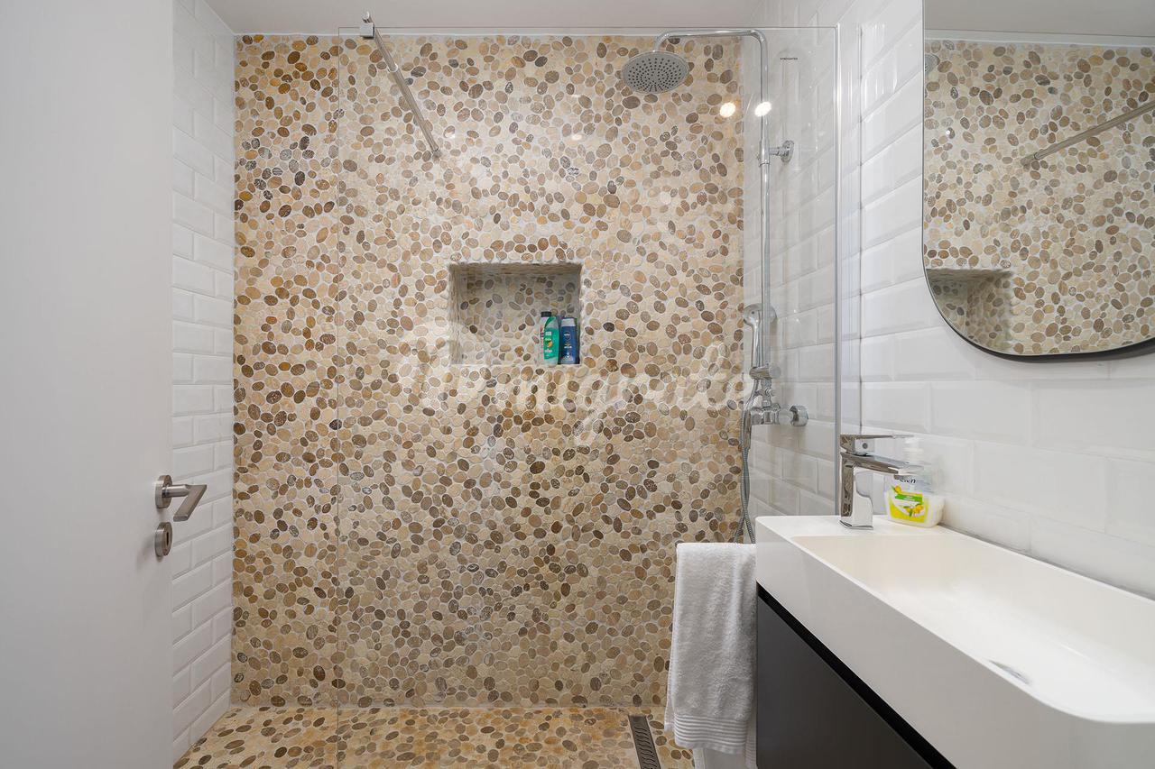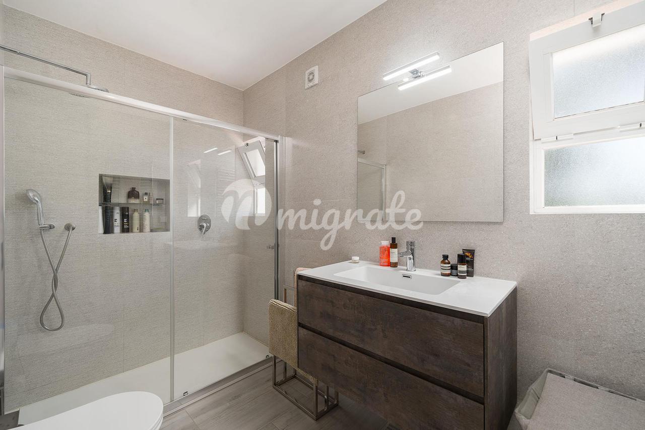 Из прихожей вы попадаете в столовую, примыкающую к полностью оборудованной кухне с кладовой. На двух уровнях расположена просторная гостиная с камином, которая имеет выход на уютную внешнюю террасу с бассейном, шезлонгами и обеденной зоной с барбекю, идеально подходящей для тех, кто хочет провести время на свежем воздухе. На первом этаже также находится спальня с ванной комнатой и встроенными шкафами. Второй этаж включает в себя солнечную террасу и еще две спальни с ванными комнатами. На этом этаже также есть выход на террасу на крыше с зоной отдыха, барбекю и видом на теннисный центр и застройку.