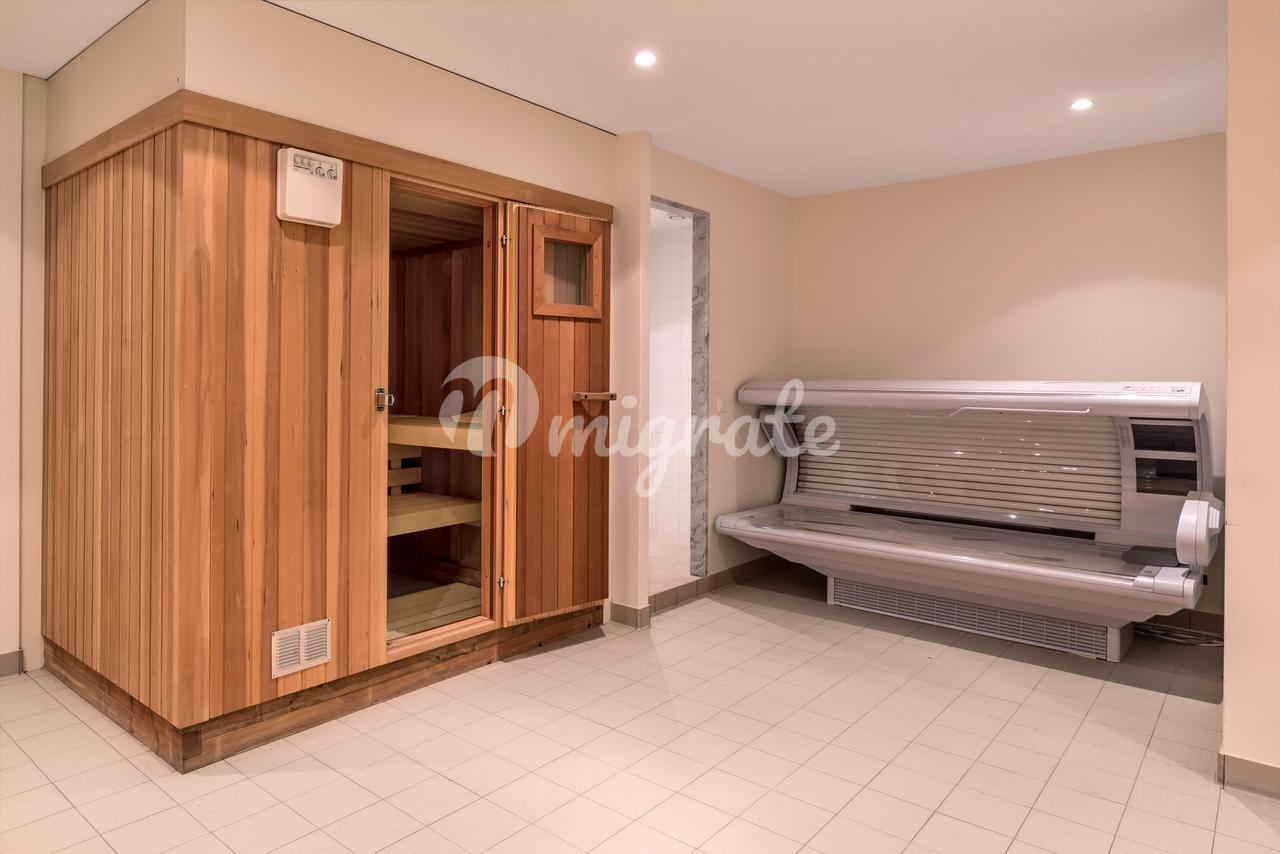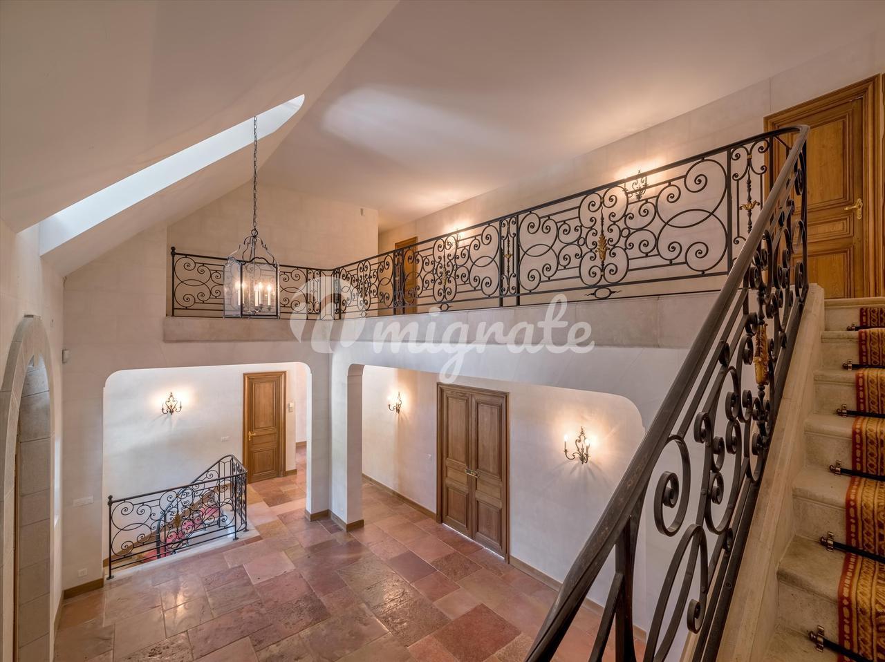 Дом расположен на красивом лесистом участке площадью более 0,66 га. Этот дом состоит из главного дома из 14 комнат с жилой площадью 670 кв.м и домика смотрителя с гаражом на 3 машины. Подземный переход, служащий художественной галереей, соединяет два здания. Существует превосходный подвал, который занимает 510 кв. м и включает в себя великолепный сводчатый винный погреб. Полностью охраняемая собственность имеет два отдельных входа.