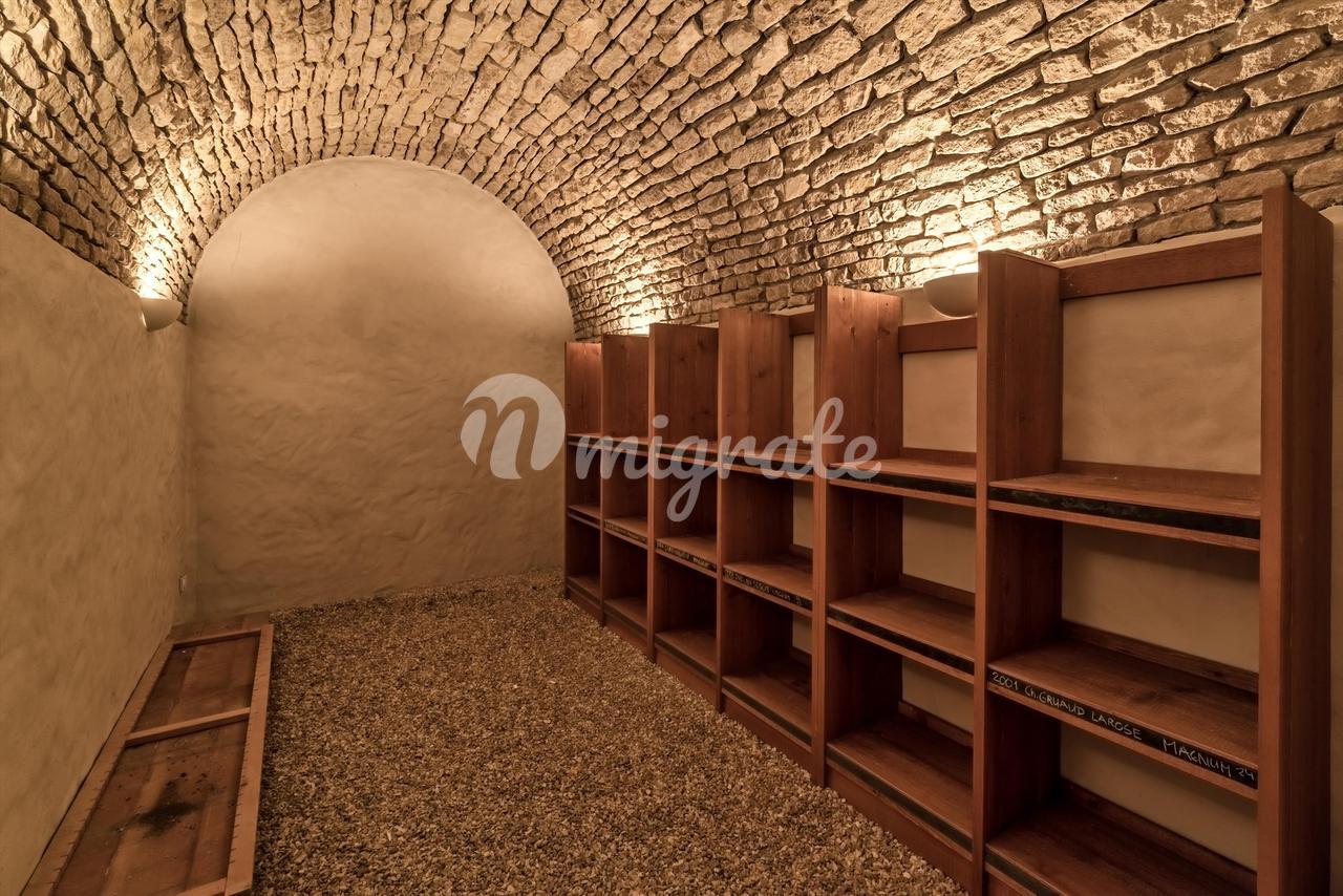 На цокольном этаже находится сводчатый винный погреб, сейф, 2 кладовые, кладовая комната, убежище для гражданской обороны и другие складские помещения.