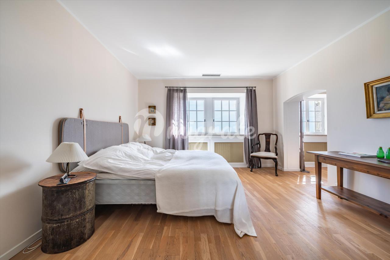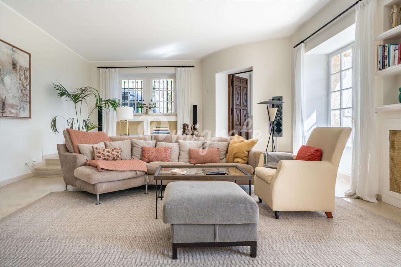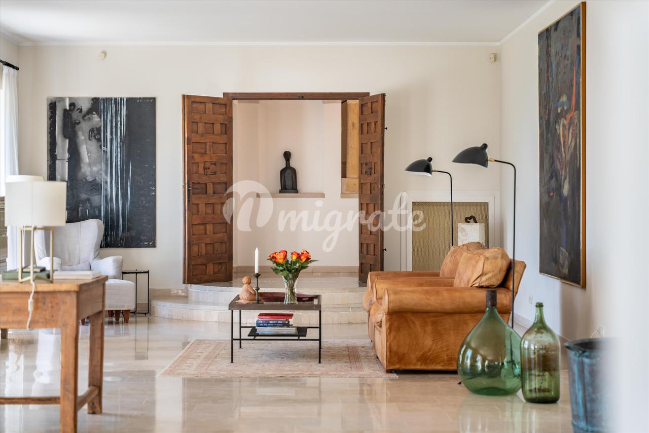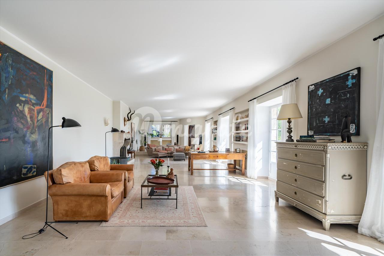 Предлагая около 460 кв.м. жилья, интерьеры включают большую гостиную с камином, столовую, просторную кухню и в общей сложности шесть спален (пять из которых имеют ванные комнаты, а шестая имеет отдельную душевую комнату). Дом также располагает отдельной квартирой площадью около 70 кв.м., большим гаражом и парковочным местом на несколько автомобилей. Расположен в саду площадью около 3950 кв.м. с окружающими террасами площадью почти 300 кв.м., большим бассейном с подогревом, летней кухней и множеством тенистых зон.
