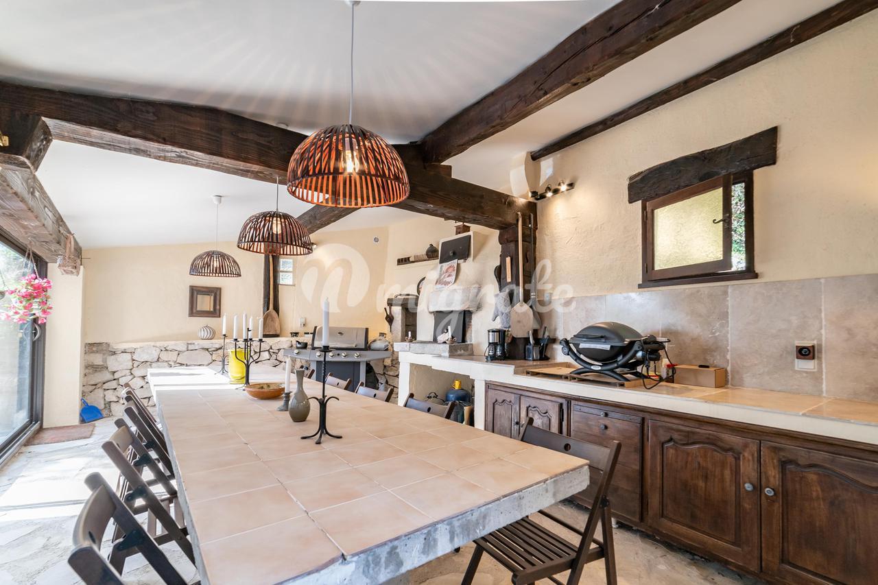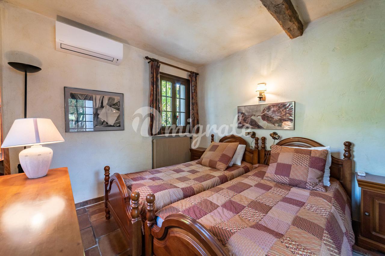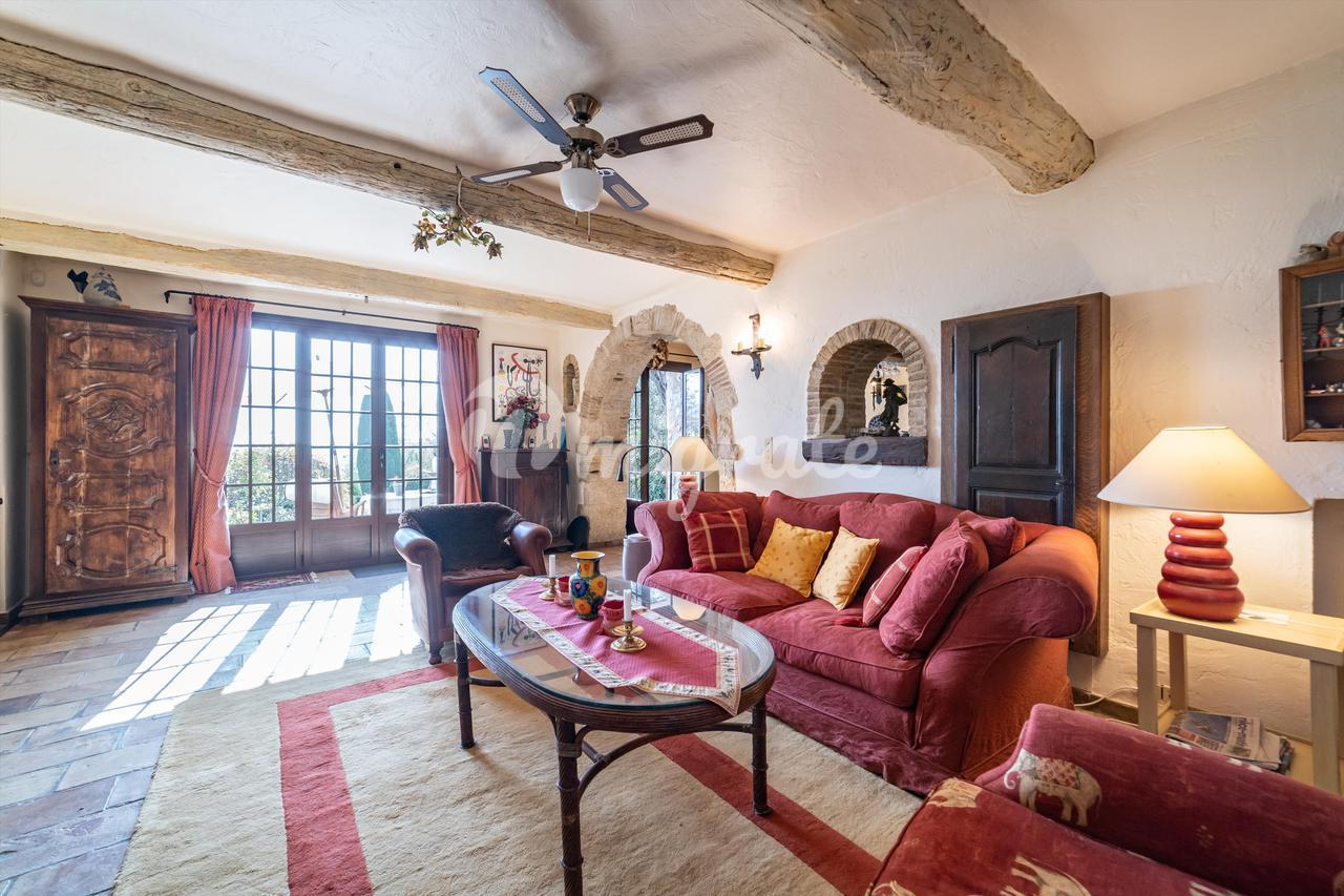 Аутентичный дом в провансальском стиле 1970-х годов с открытыми балками, расположенный в тихом месте недалеко от центра Ванса. Нуждающийся в ремонте первый этаж состоит из прихожей, небольшой кухни с обеденной зоной, гостиной с камином, зимней гостиной / столовой с эркерами по всей площади, кабинета, библиотеки, гостевого туалета, одной спальни и ванной комнаты. На втором этаже расположены две спальни, ванная комната и терраса. На нижнем цокольном этаже находятся прачечная, котельная и большой гараж. В саду есть большая летняя кухня с окнами с двойным остеклением, печью для пиццы и барбекю, где за большим столом могут разместиться до двадцати гостей. Существует также бассейн свободной формы, электрические ворота, сигнализация.