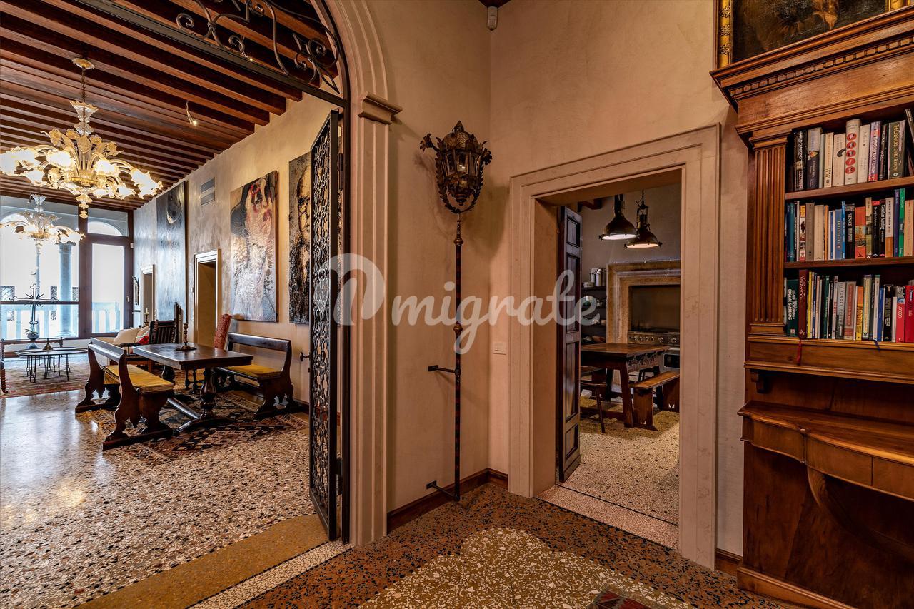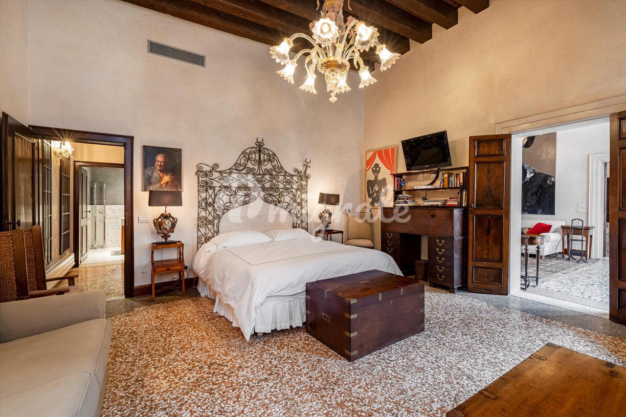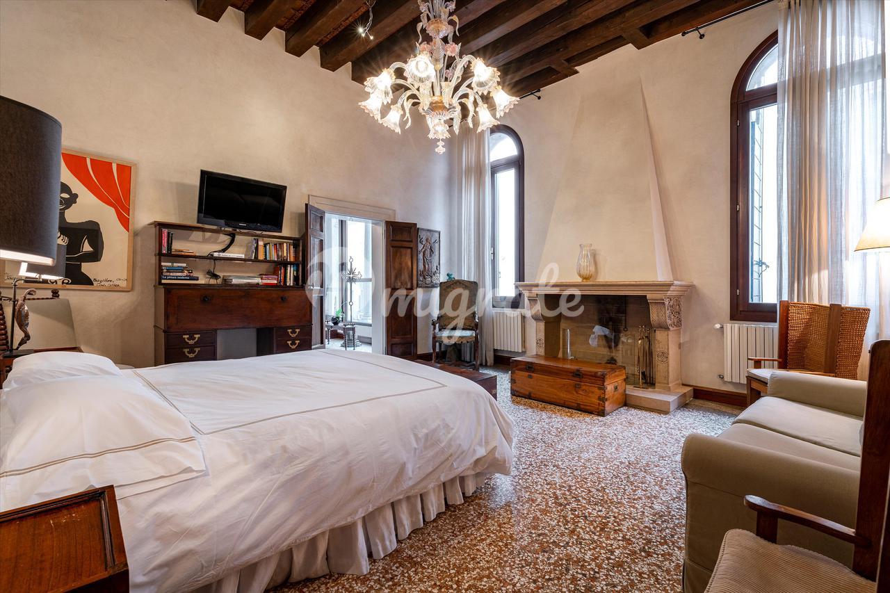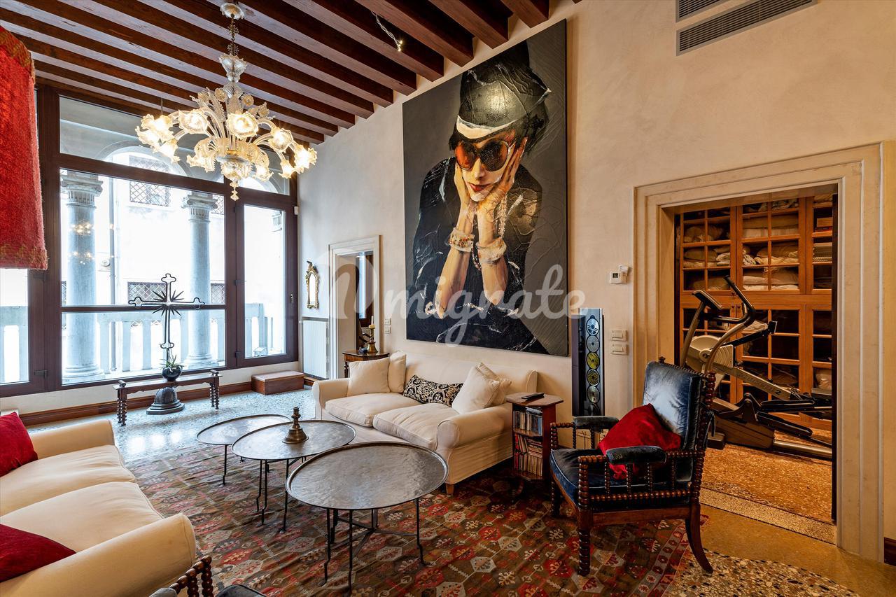 В доме есть впечатляющее окно trifora, которое выходит на тихий канал и наполняет большую гостиную большим количеством света. Квартира, недавно отреставрированная, состоит из четырех больших спален с двуспальными кроватями, две из которых с видом на канал, трех роскошных ванных комнат, отделанных мрамором, библиотеки и небольшого тренажерного зала. В главной спальне есть большой камин, проходная гардеробная и собственная ванная комната с паровой баней. Просторная кухня оснащена первоклассной бытовой техникой, включая винный холодильник с регулируемой температурой.