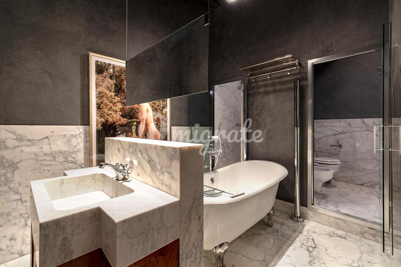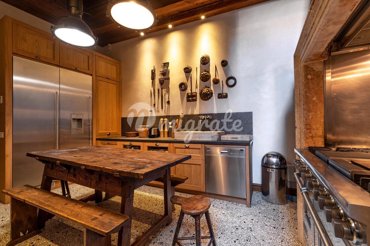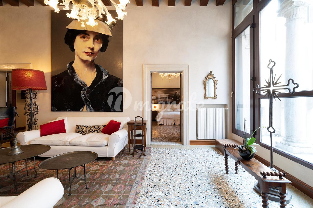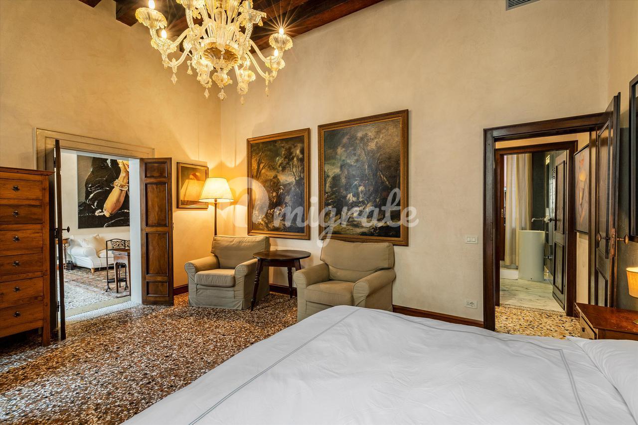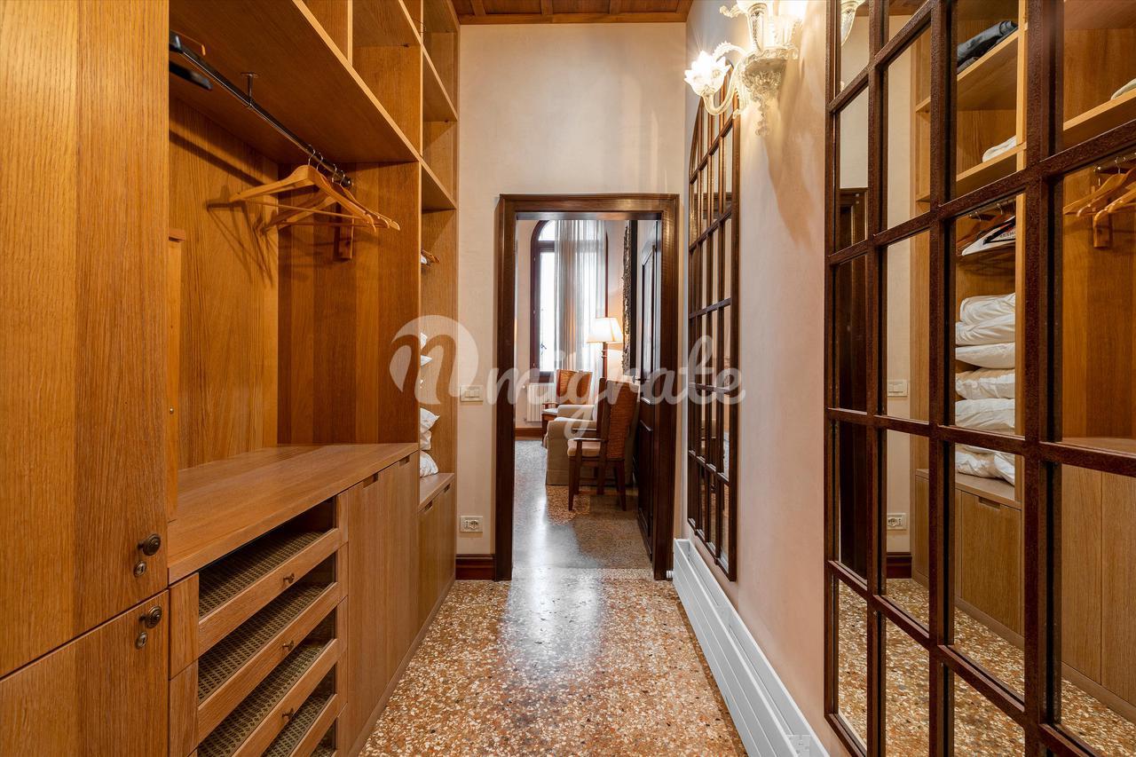 В доме есть впечатляющее окно trifora, которое выходит на тихий канал и наполняет большую гостиную большим количеством света. Квартира, недавно отреставрированная, состоит из четырех больших спален с двуспальными кроватями, две из которых с видом на канал, трех роскошных ванных комнат, отделанных мрамором, библиотеки и небольшого тренажерного зала. В главной спальне есть большой камин, проходная гардеробная и собственная ванная комната с паровой баней. Просторная кухня оснащена первоклассной бытовой техникой, включая винный холодильник с регулируемой температурой.