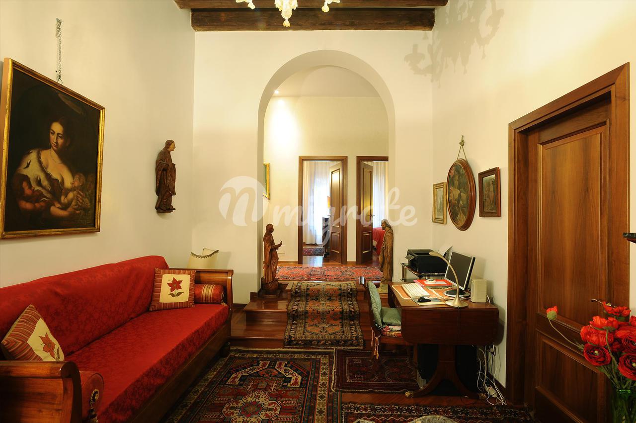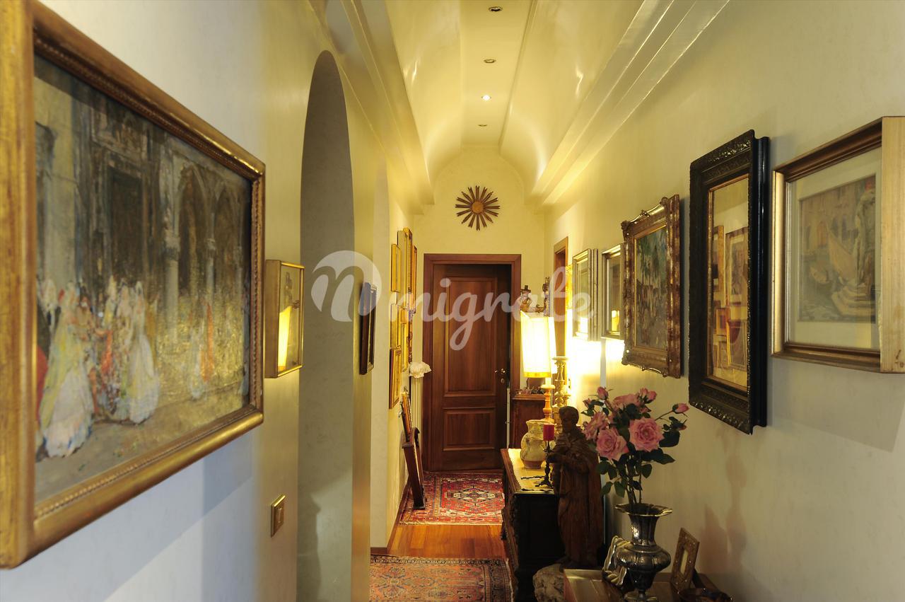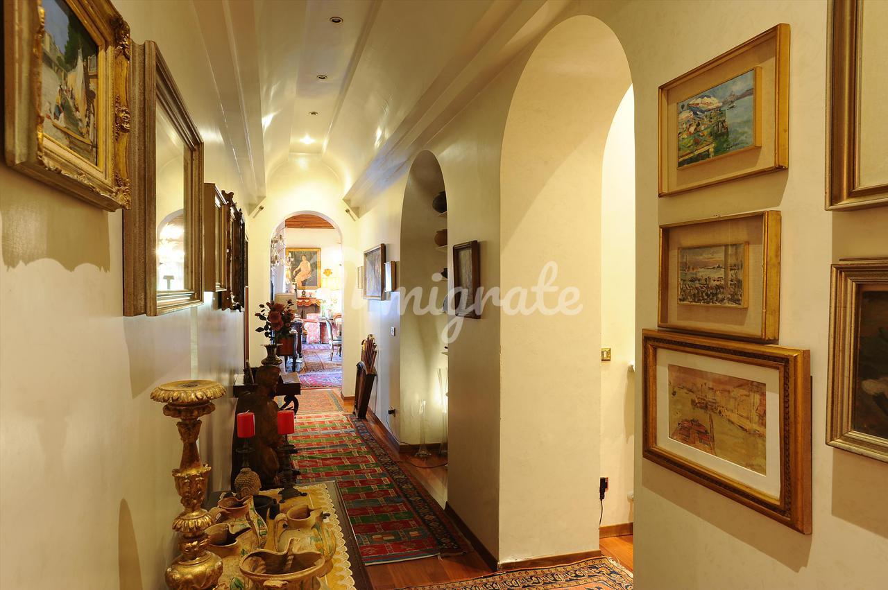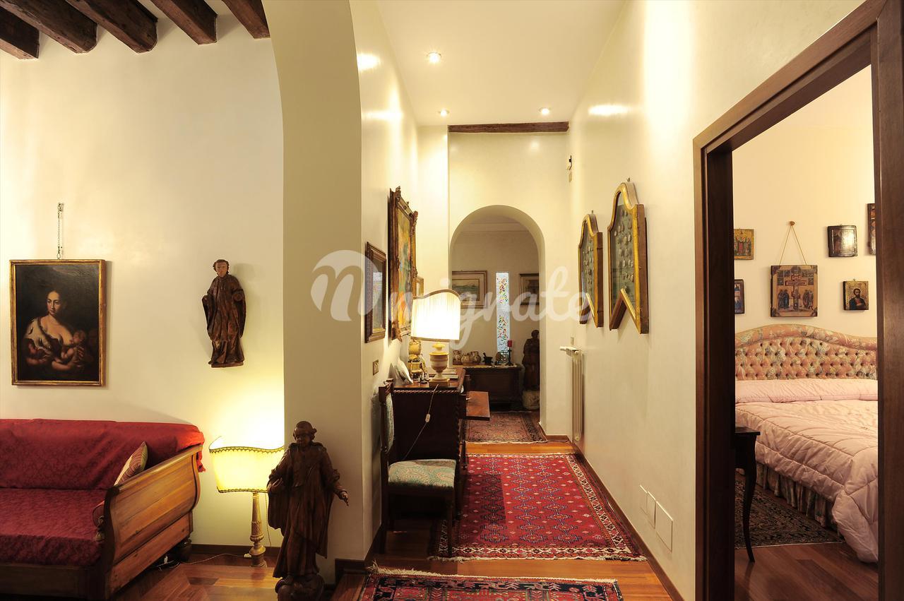Квартира включает в себя две просторные комнаты для приемов. В той, что выходит в сад, есть восемь готических окон с красивыми декоративными лепными рамами, высокие потолки с открытыми деревянными балками, стены, оштукатуренные венецианской штукатуркой, и оригинальный мраморный камин. Отдельную вторую жилую зону можно использовать как библиотеку или кабинет с прилегающим подсобным помещением. Большая кухня оформлена в венецианском загородном стиле со встроенными приборами на заказ с эксклюзивной керамикой и шкафами из дубового дерева. Две спальни с двуспальными кроватями дополнены двумя ванными комнатами - одна с джакузи - и гардеробной.