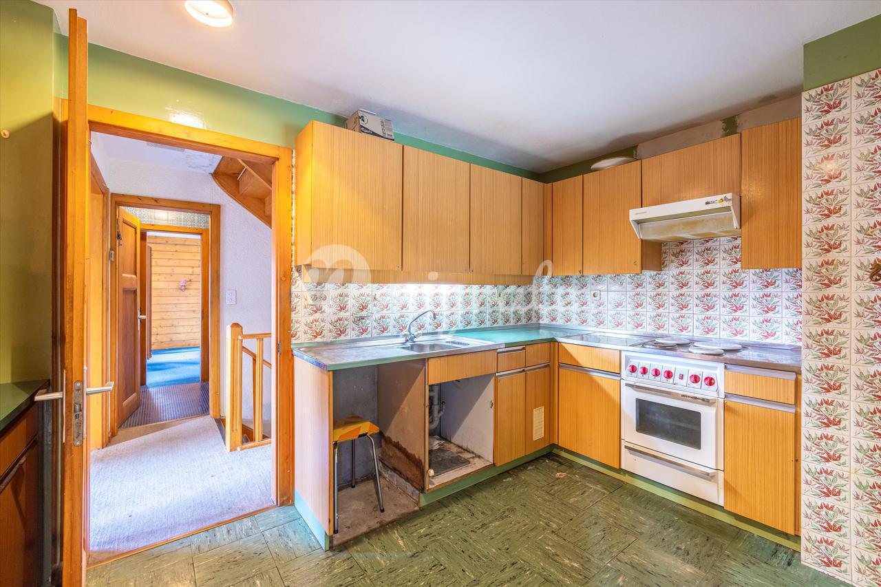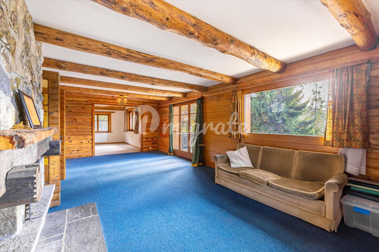 Это шале с большим потенциалом для ремонта и модернизации расположено в отличном месте с прекрасным видом на горы.