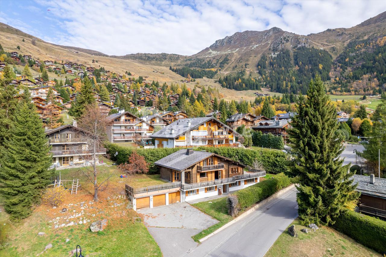 Шале расположено на участке площадью 1300 кв.м и имеет жилую площадь 248 кв.м. Он дополняется двумя дополнительными участками на другой стороне дороги, один площадью 464 кв. м, а другой - 162 кв.м. Шале состоит из просторной гостиной с камином, отдельной кухни, большой круглой террасы, шести спален, четырех ванных комнат и балкона. Есть также два гаража, кладовая и парковка вне дороги.
