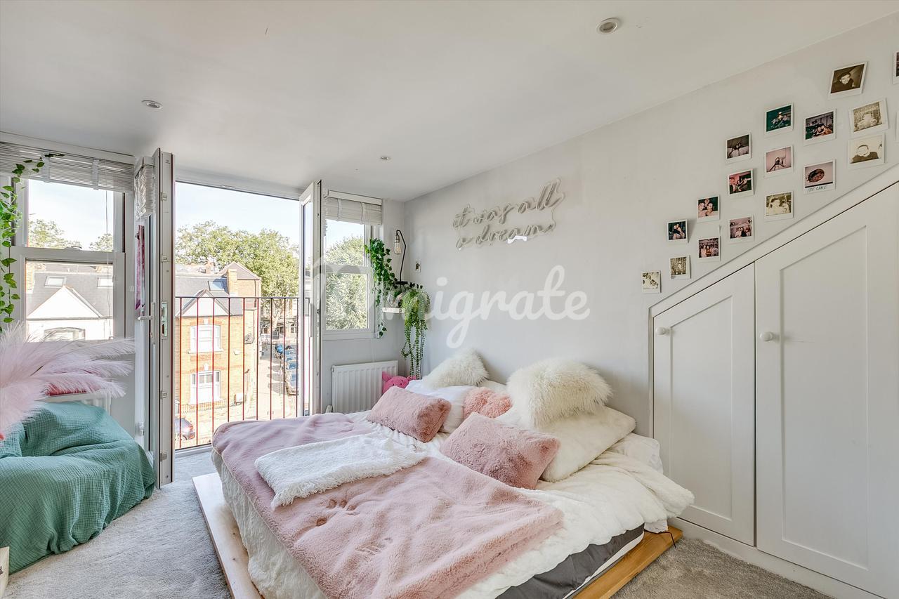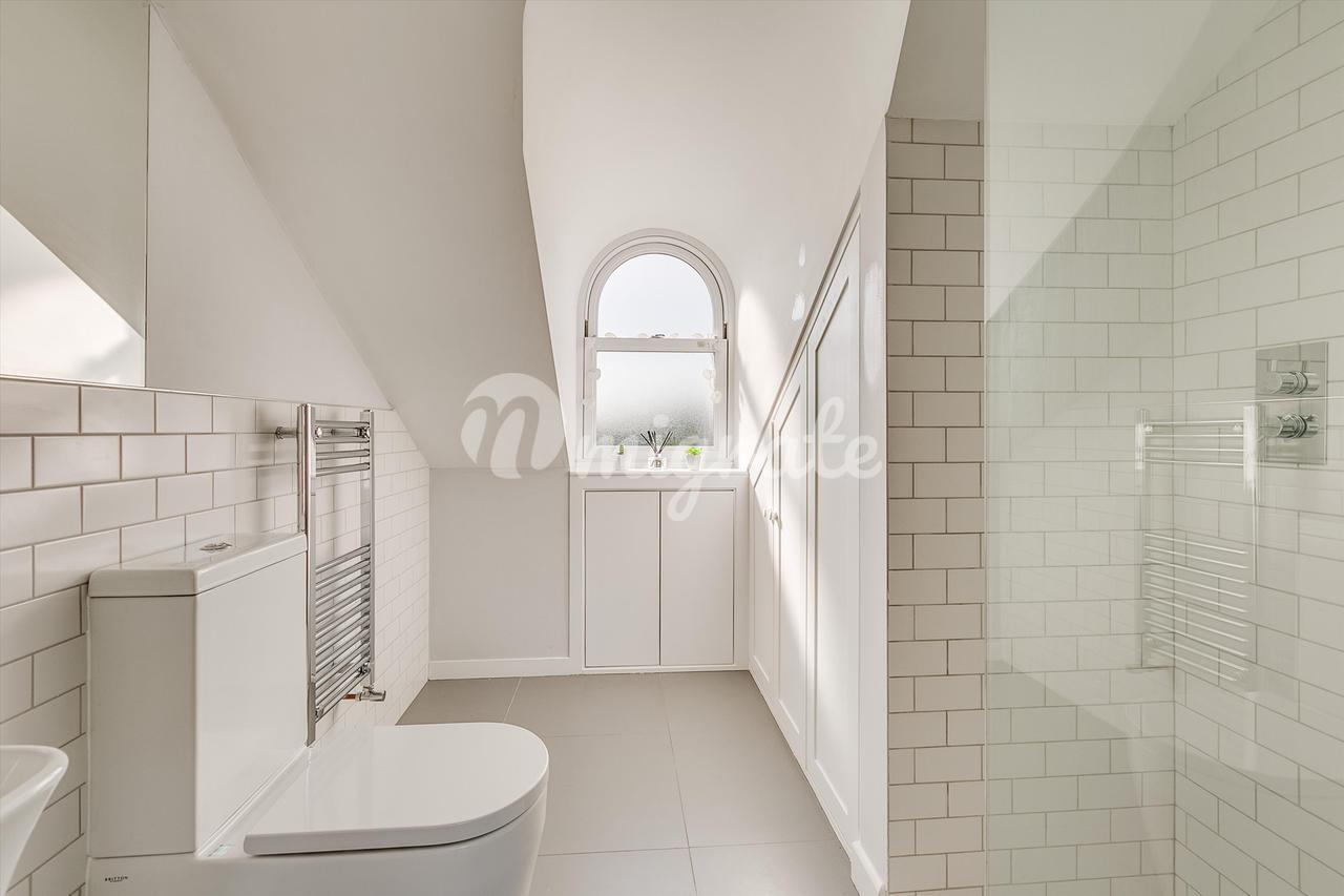 При входе есть гостевой туалет и шкаф для хранения вещей, холл ведет в кухню открытого плана с барной стойкой. Приемная разделена на столовую и гостиную и выходит окнами на сад, из которого есть ворота, ведущие прямо на Чизвик-Хай-роуд. Второй этаж предлагает две спальни с двуспальными кроватями, одна из которых имеет ванную комнату с душем. Семейная ванная комната завершает этот этаж. Чердак был преобразован, чтобы обеспечить потрясающую главную спальню на втором этаже с ванной комнатой и большим количеством места для хранения вещей.