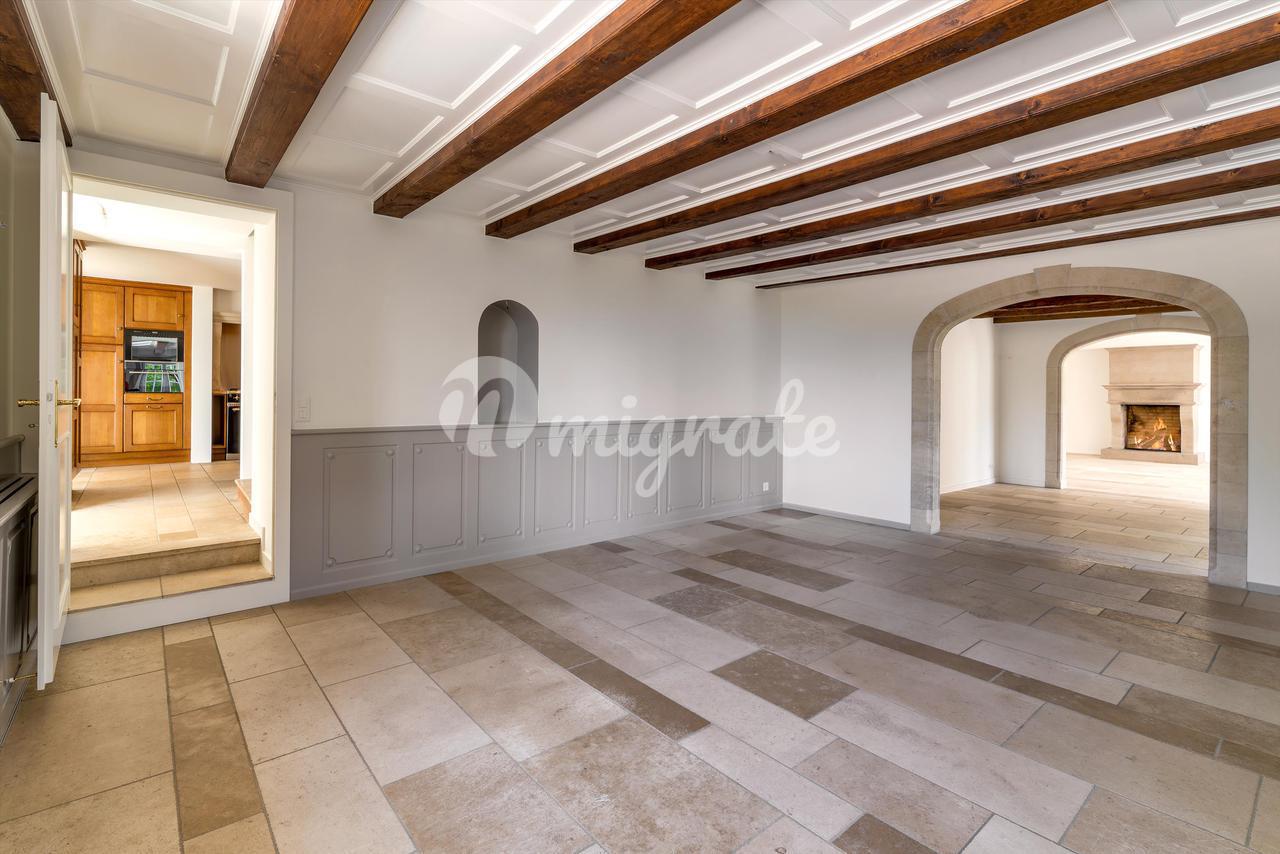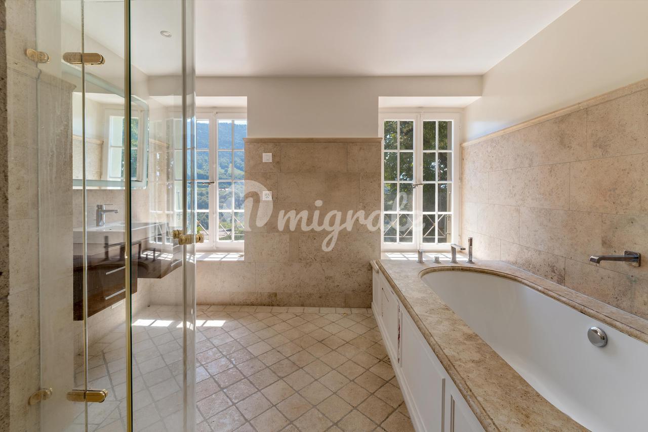 Этот красивый дом был полностью отремонтирован в 2007 и 2021 годах. В нем есть большая прихожая с гардеробной, гостиная с камином, столовая и полностью оборудованная кухня. На этом этаже также есть прилегающая веранда с выходом на мощеную террасу, гостевой туалет и прачечная / отопительное помещение. Все полы выложены бордовым камнем, а стены приемных отделаны деревянными панелями. В подвал можно попасть через кухню. В нем есть сводчатый винный погреб (четыре зоны), карноцет, отдельная спальня и выход на открытый отдельный внутренний двор.