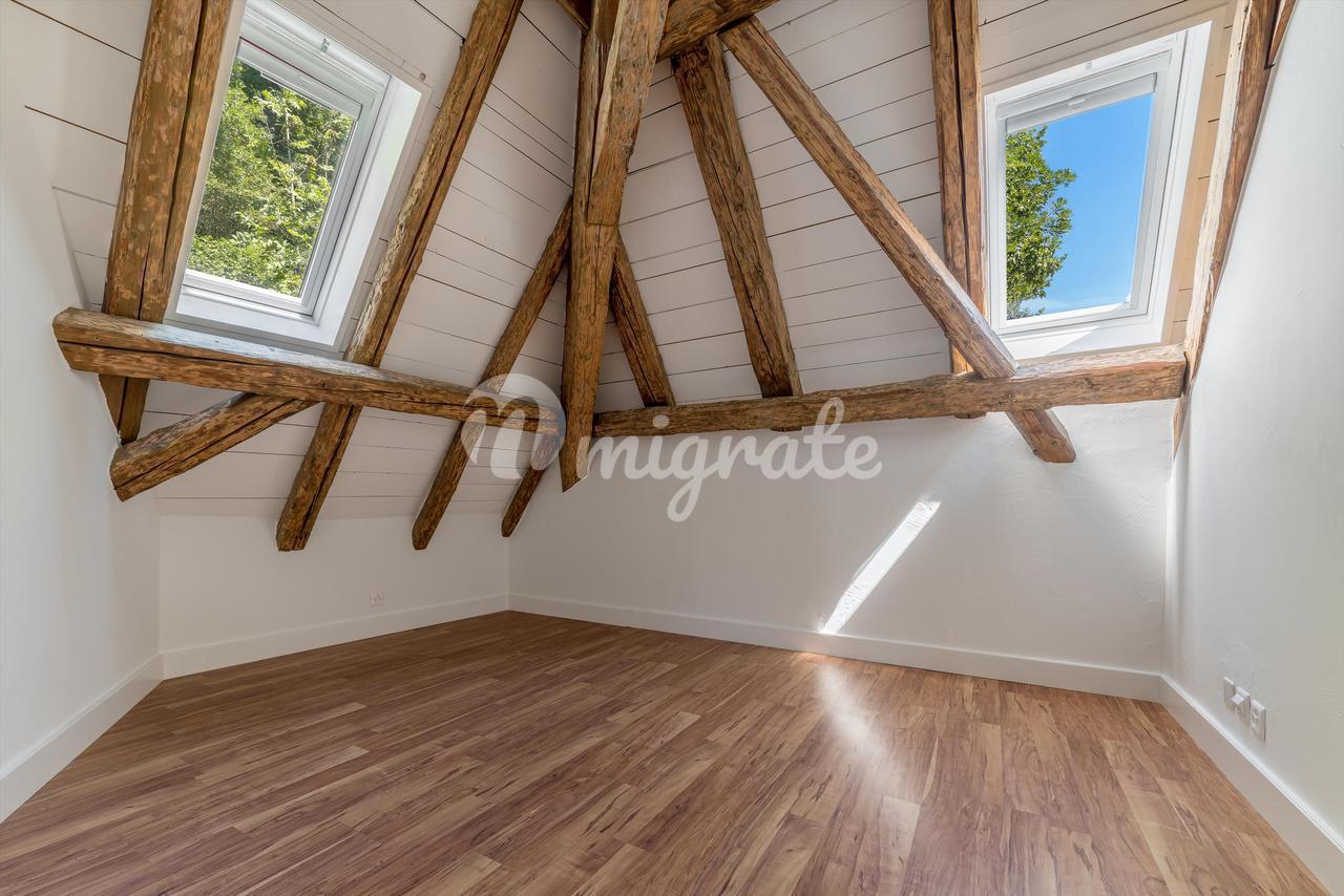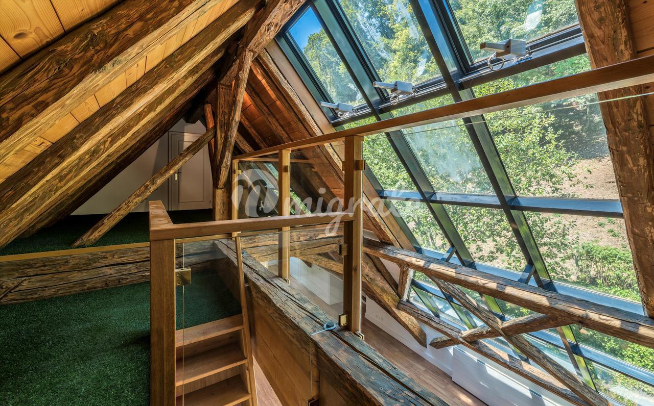 Верхний уровень выигрывает от центральной зоны, которая используется в качестве гостиная, четыре спальни и отдельная ванная комната. Одна сторона крыши частично застеклена, чтобы обеспечить максимальное освещение на этом этаже. Чердак был переоборудован в игровую комнату и используется для хранения вещей.