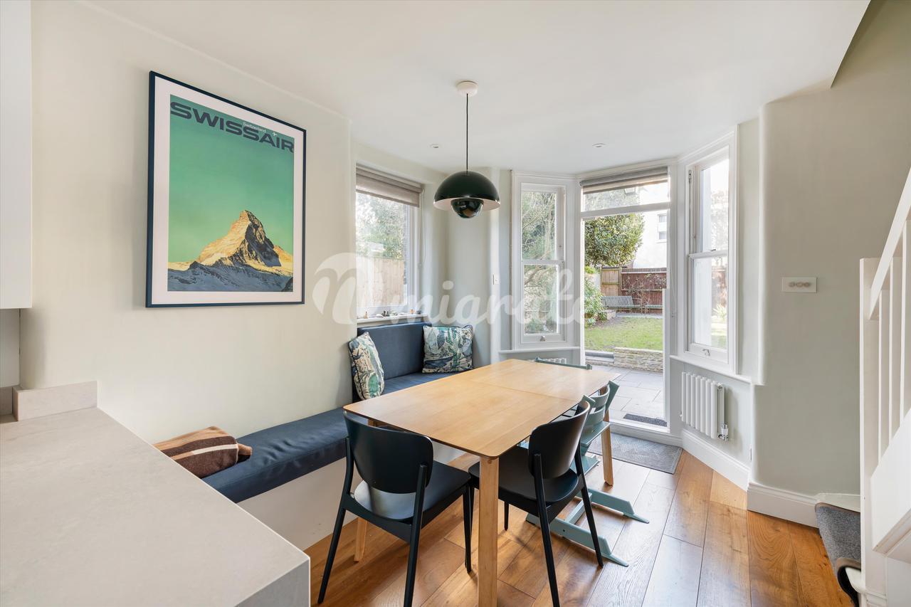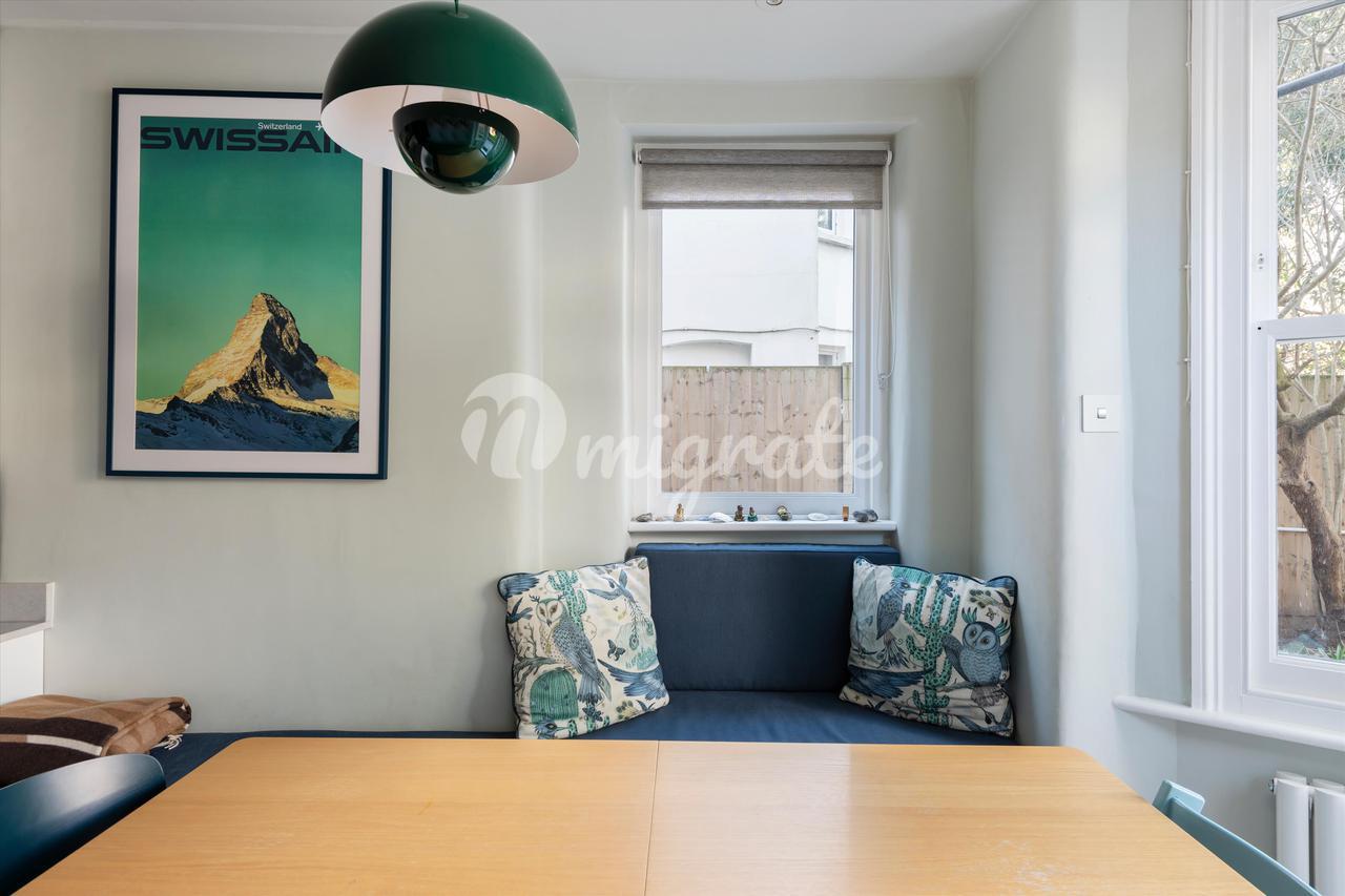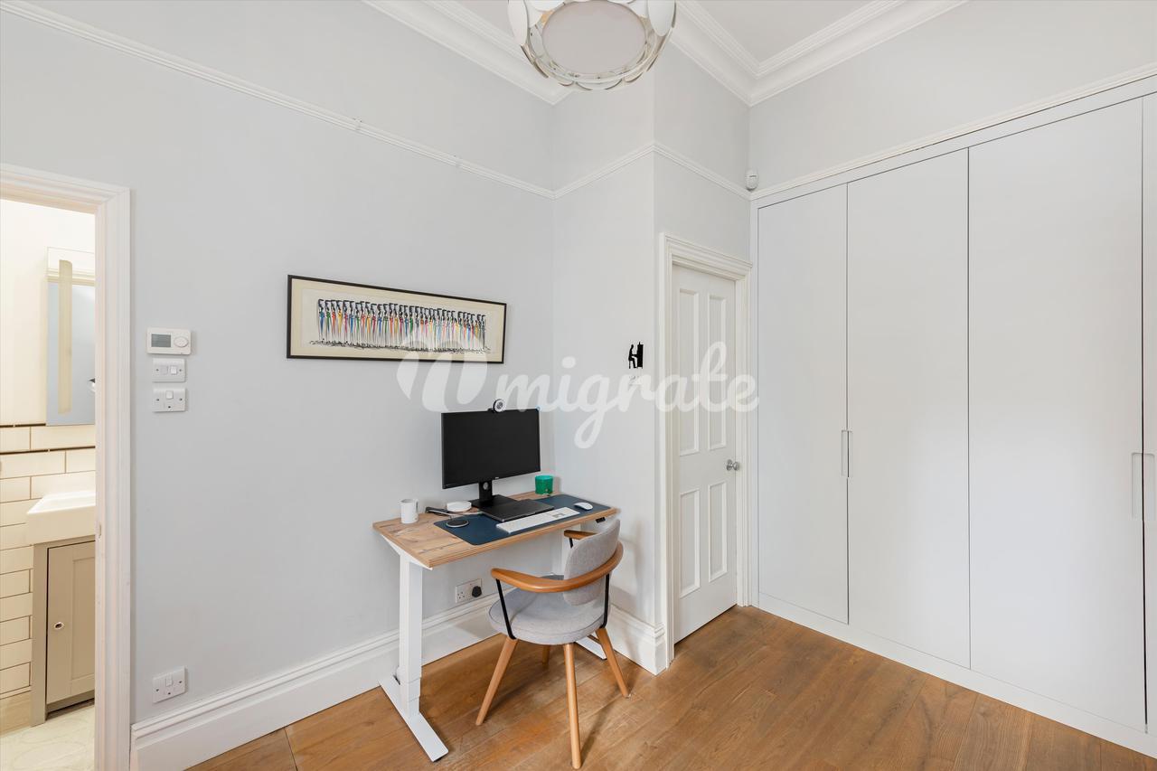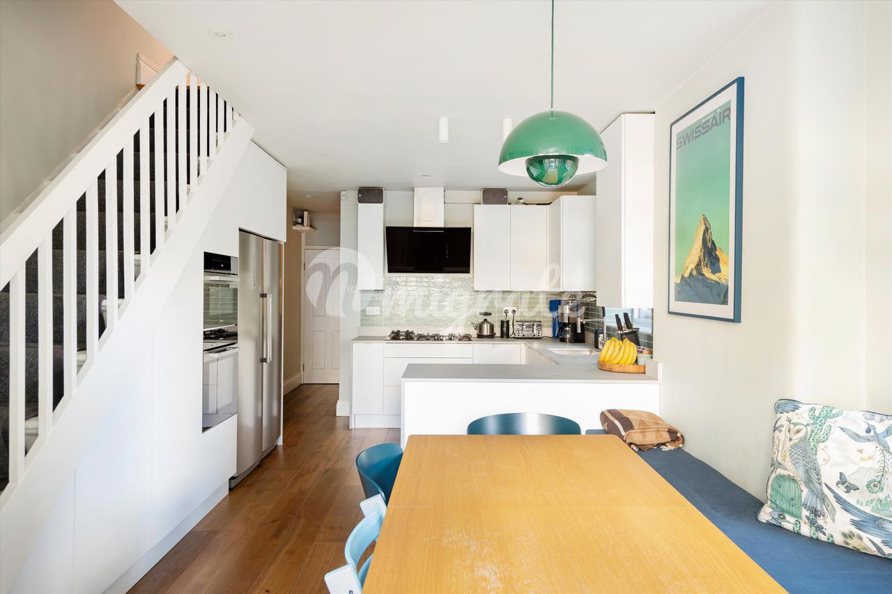 Потрясающий мезонет площадью более 1200 кв. футов с продуманным интерьером, тремя спальнями, двумя ванными комнатами, двумя приемными и подвалом площадью 100 кв. футов. Нынешний владелец тщательно восстановил старинные элементы интерьера, в том числе поднял потолок, чтобы показать оригинальный карниз и викторианскую потолочную розетку. Хранилище разумно и дискретно интегрировано во все помещения для семейного проживания. При входе в квартиру вас встречает залитая светом приемная с большим эркером и открытым камином. Третья спальня или домашний офис также расположена на этом этаже и располагает собственной ванной комнатой в дополнение к семейной ванной комнате, куда можно попасть из коридора. В задней части дома расположены просторная кухня открытой планировки и столовая, которая выходит в 40-футовый частный сад с двумя зонами отдыха. Изящная лестница в задней части дома ведет еще к двум спальням на втором этаже.