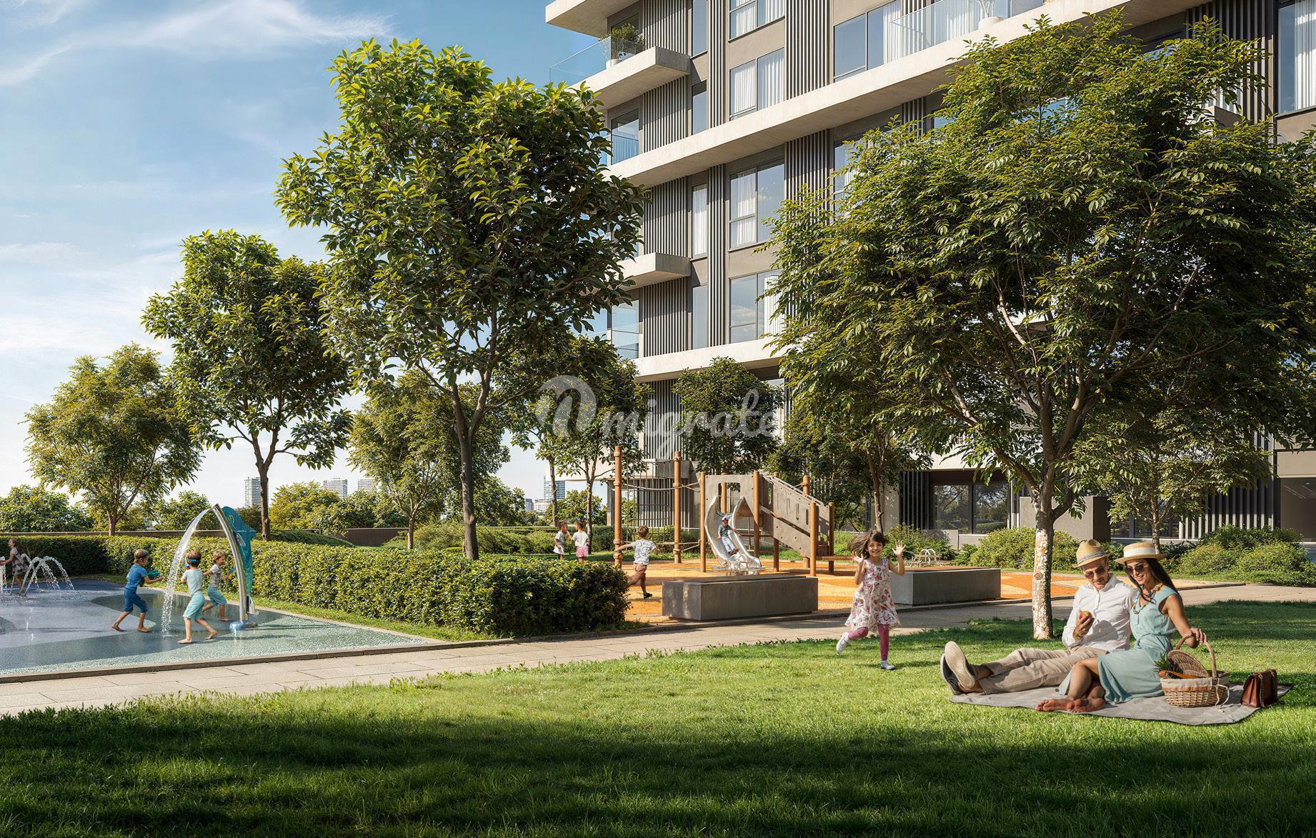 В комплексе предлагаются апартаменты с 1, 2 и 3 спальнями, просторными планировками, окнами от пола до потолка, элегантной современной отделкой и потрясающими видами на чемпионское поле для гольфа, пышные парковые зоны и знаковый городской горизонт. Среди удобств - взрослый и детский бассейны, современный тренажерный зал, места для проведения общественных мероприятий, площадки для барбекю, детские игровые зоны и ландшафтные сады.
