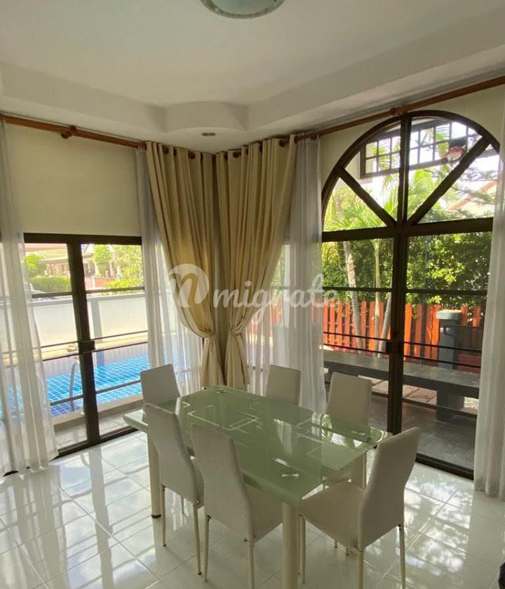 1-этажный дом с бассейном в популярном поселке Баан Дусит Паттайя-1 на территории 360 кв.м. В доме 3 спальни, 2 ванные комнаты. В деревне: общий бассейн, тренажерный зал, поле для гольфа, теннисный корт, велосипедные дорожки. Рядом находятся: аквапарк, ботанический сад, православная церковь.
