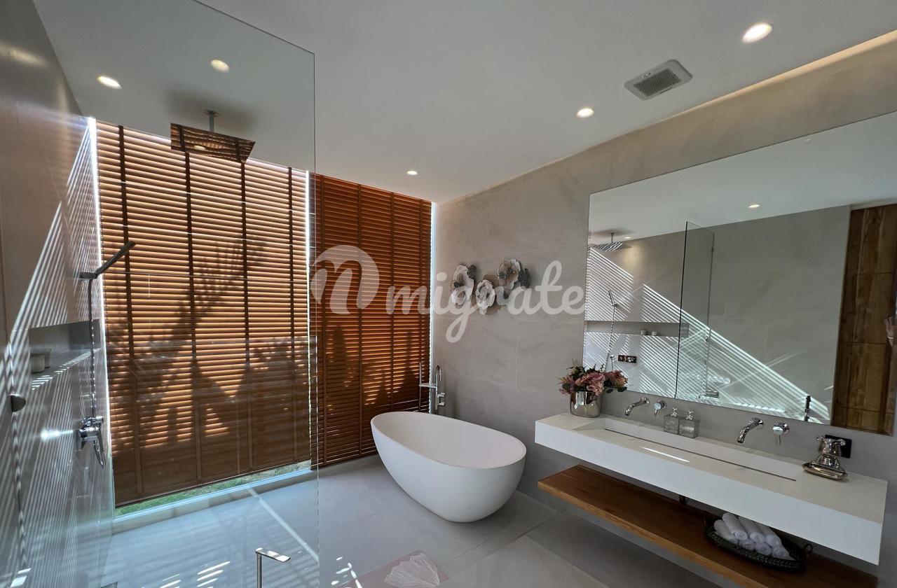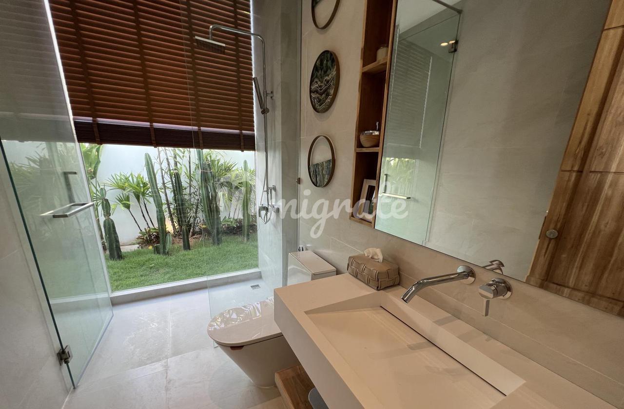 Роскошная вилла с бассейном, расположена в красивом уголке недалеко от Лагуны и премиального пляжа Банг Тао. Эта вилла идеально подходит для тех, кто ищет тихое и уединенное место, чтобы насладиться теплым климатом и живописной природой. Вилла располагается в бутиковом комплексе состоящем всего из 19 вилл в двух фазах. Вилла имеет три просторные спальни и мастер-спальню, полностью обособленную от других комнат, что обеспечивает максимальную приватность и комфорт. Все спальни оснащены панорамными окнами, которые позволяют наслаждаться потрясающим видом на тропическую растительность, а панорамные окна со вторым светом в гостиной смотрят в сад и на бассейн с террасой для отдыха. Эта вилла обставлена мебелью, изготовленной по-эксклюзивному заказу, что обеспечивает ее неповторимый стиль и уникальность. Кухня также оснащена всей необходимой встроенной техникой и не потребует дополнительных вложений. Один из главных преимуществ этой виллы - это терраса у бассейна, площадью 50 квадратных метров, где вы можете наслаждаться жаркими днями, плавать в бассейне или просто отдыхать на шезлонгах в беседке. В общем, эта вилла предлагает комфортное проживание в красивом месте, где вы можете отдохнуть и насладиться природой в свое удовольствие. Крытый гараж вмещает две машины.