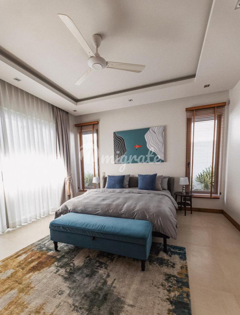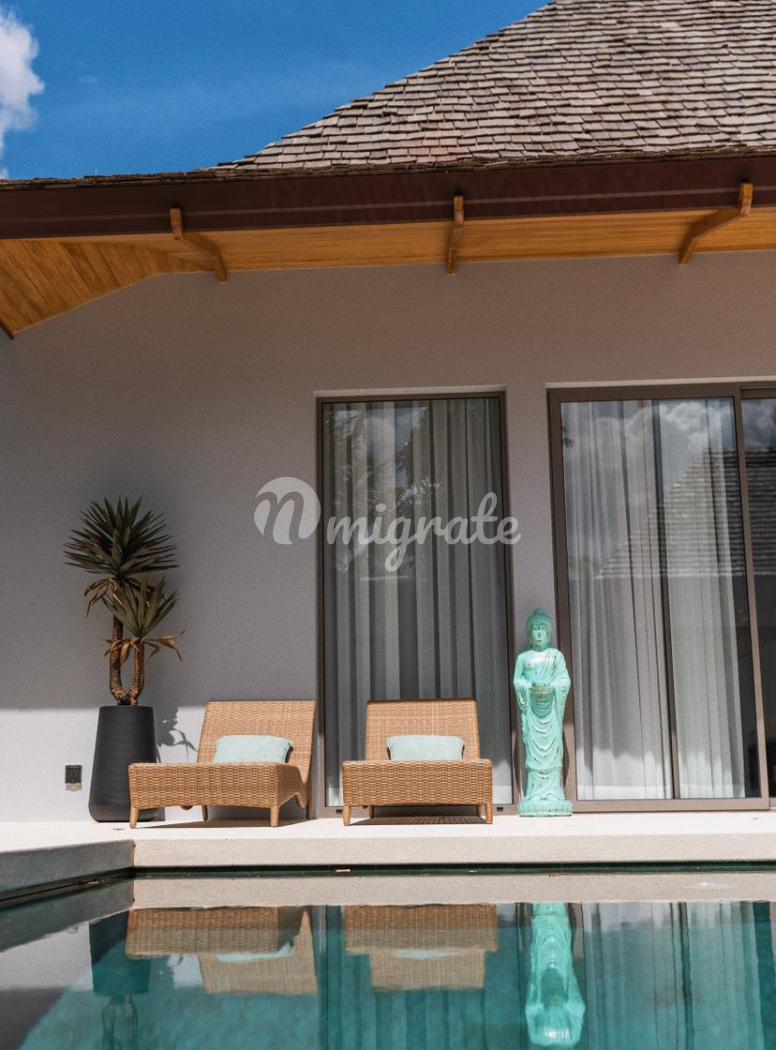 Абсолютно новая вилла на Пхукете, в престижном районе, в нескольких километрах от пляжа Банг Тао. Строительные работы завершились в декабре 2022. Готова к заселению. Закрытый комплекс из 42 вилл класса-люкс. Площадь виллы - 418 кв. м., площадь участка - 634 кв. м. Полностью мебелирована. Три спальни, три ванные, большая гостевая зона с кухней, везде панорамные окна. Бассейн 10 метров в длинну, беседка, зона барбекю. Центральное кондиционирование, вся необходимая техника в наличии. Индивидуальный люксовый дизайн интерьера, вся фурнитура, элементы декора. Кастомизированная входная группа: сделан бассейн с карпами кои и тропический сад. Гараж на два автомобиля.