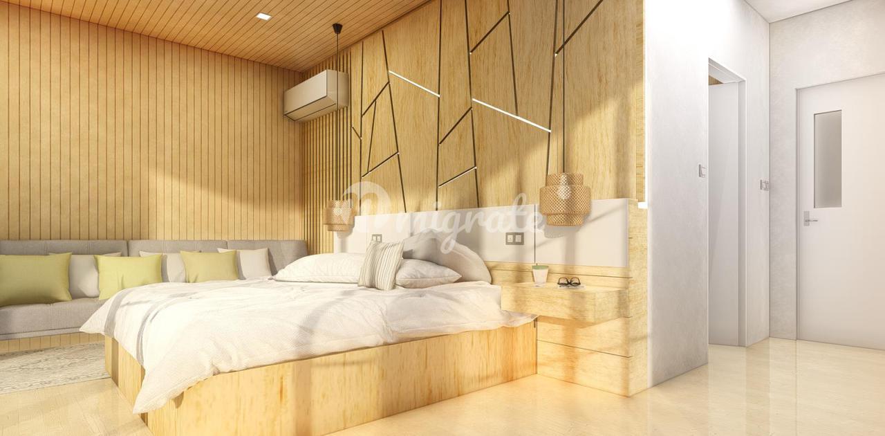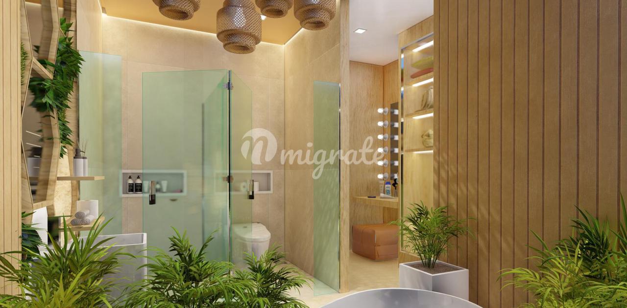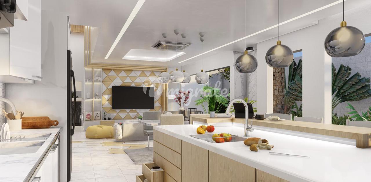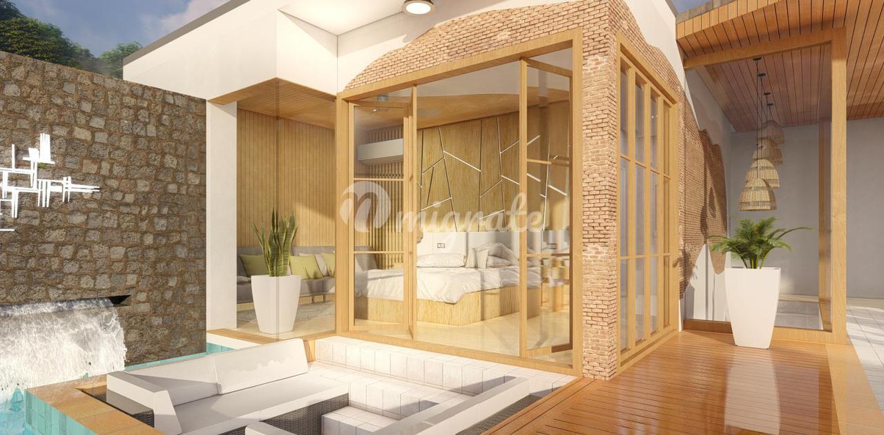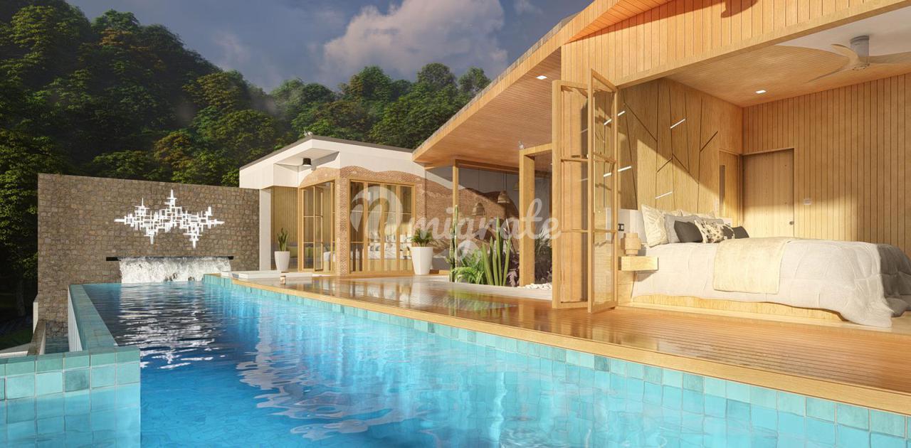 Вилла с бассейном, расположенном на третьем этаже. С террасы у бассейна открывается потрясающий вид на закат и горы, покрытые изумрудной тропической зеленью. Вилла с 5-ю спальнями, каждая из которых оборудована собственной ванной комнатой. Два дополнительных сан.узла примыкают к гостиным, а в данной вилле их две - на первом и третьем этажах. Основная гостиная с просторной кухонной и зоной столовой располагается на первом этаже. Для дизайна внутренних помещений этого уровня будет использован белый мрамор. Широкие распашные окна и двери, дают доступ свежему бризу и позволяют проветривать дом. На зеленой лужайке оборудовано место для отдыха. Дизайнеры проекта были максимально сосредоточены на том, чтобы подчеркнуть гармонию с природой, поэтому при строительстве, не нарушая окружающую среду, сохранен уровень естественной зелени на участке. Уделив внимание деталям, застройщик добавил деревянные рейки к многофункциональному внутреннему двору, повысив тем самым уровень конфиденциальности проживающих на вилле. Мастер-спальня также находится на данном уровне виллы. На втором этаже расположены две спальни с ванными комнатами. В интерьере данного этажа предоставлен оттенок дерева, чтобы отразить природную среду и разделить два разных уровня. Обе темы цветового решения и различие используемых материалах придают вилле современный вид и при этом органично вписываются в окружающую среду. Вилла была спроектирована таким образом, чтобы на третьем этаже расположился бассейн с затонувшей зоной с диванами для отдыха. Бассейн обращен на запад, откуда открывается вид на закат. Общая протяженность бассейна более 15 метров. Здесь находятся четвертая и пятая спальни, каждую из которых можно считать мастер-спальней - они просторные, оборудованы ванными комнатами, из панорамных окон открывается потрясающий вид. На третьем этаже, между спальнями, находится лаунж со вторым светом в потолочной части. Строительство виллы займет примерно 12 месяцев, в течение которых покупателю предлагается беспроцентная рассрочка и оплата распределена в соответствии с графиком строительных работ.